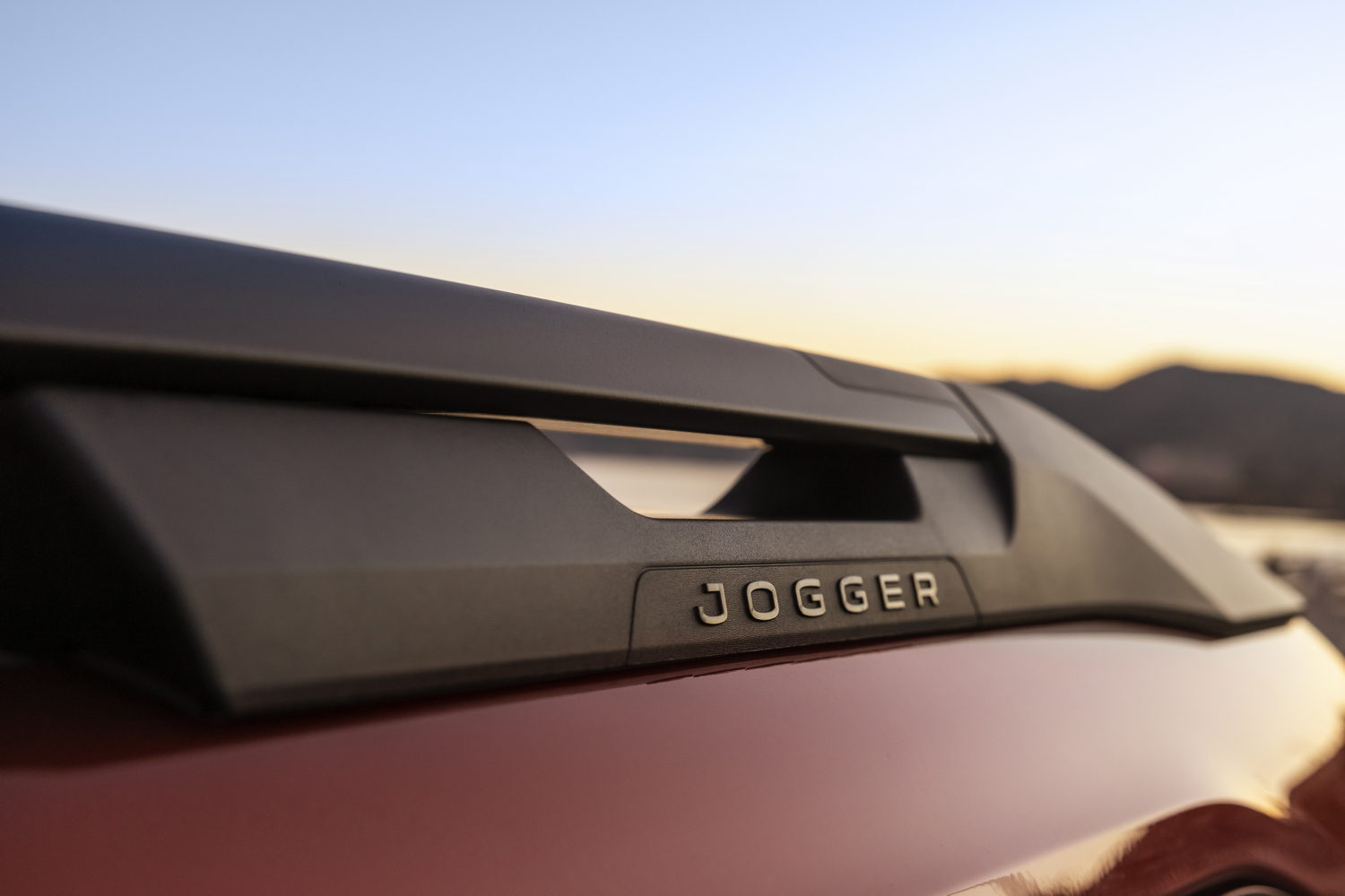 From some angles, the Jogger looks like a kind of melted Volvo XC70 (remember those?) with the tough-looking cladding and raised ride, but there's a more upright silhouette. From the front, we think it looks quite good, with creases in the bonnet and the latest Dacia grille. At the back, it's more Volvo XC90 with those taillights, but the squared-off tailgate is a bit van-like. We aren't sure about the step in the window line, either, which is there because the back seats are higher than those in the front to aid forward visibility, but it looks a bit disjointed.