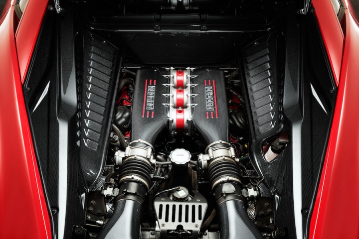 The interior of the 458 Speciale is a lesson in expensive minimalism. Carbon fibre and Alcantara abound, from the dashboard to the centre console to the Sabelt bucket seats. The glovebox of the 458 Italia has been replaced by a simpler dashboard with extra padding. There's no stereo, no satnav, no Bluetooth. As you'd expect, all controls and readouts are for the driver's attention first and foremost. Most prominent of these is the huge yellow rev counter. Ahead of that is a chunky carbon and leather steering wheel featuring Ferrari's now-standard Manettino switch, a large red ENGINE START button and, controversially, buttons for the indicators, lights and wipers. There are no column stalks, which means it takes some practice to get used to the extra buttons on the wheel. In fairness, if you buy this car to be driven as Ferrari intended then you'll be glad there are no distractions to get in the way of the tactile gearchange paddles mounted behind the wheel.