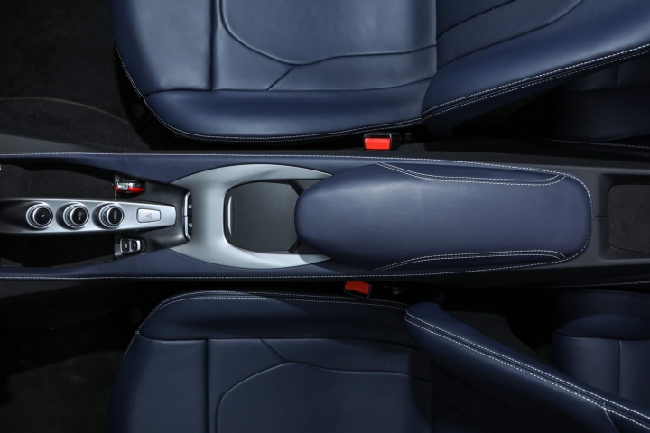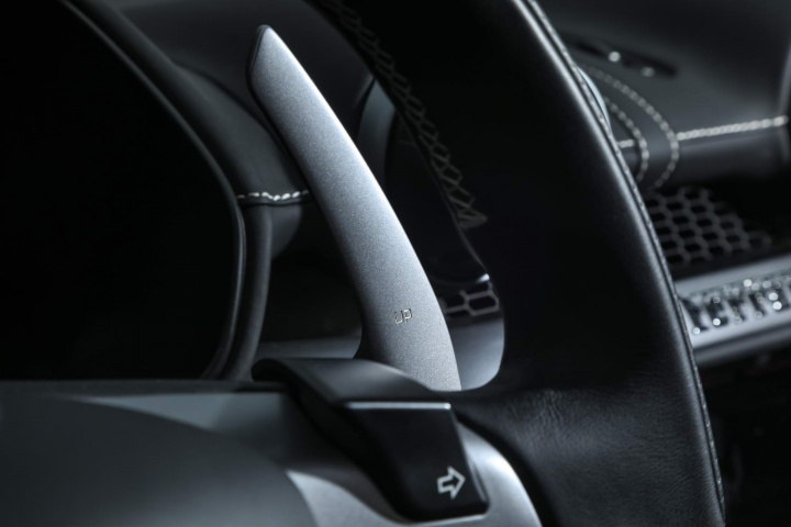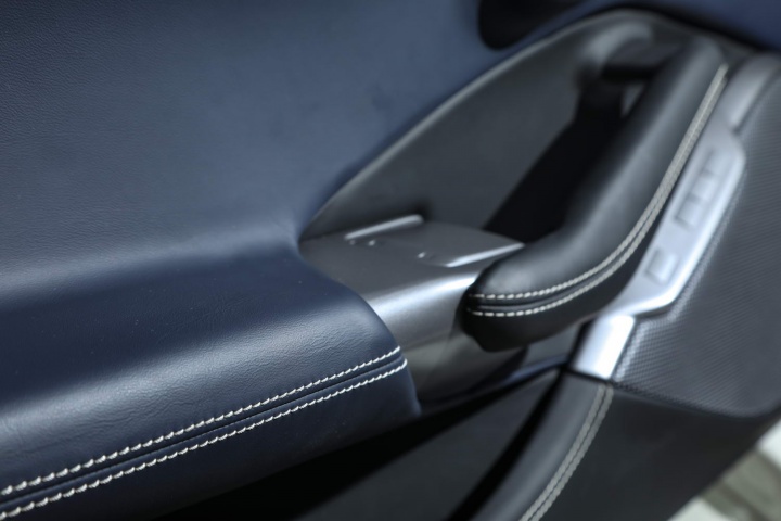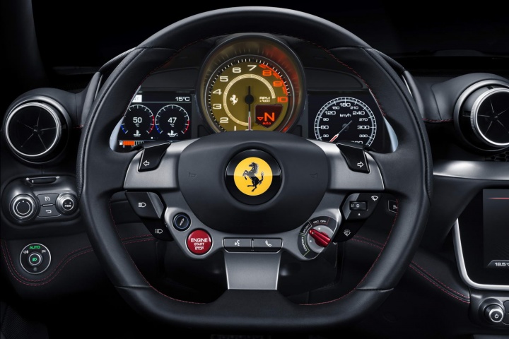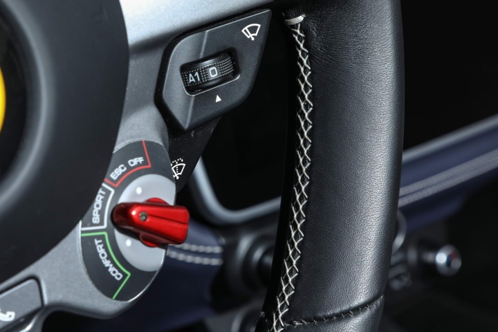 Overall, it's a great cabin, although it'll take some familiarisation with the steering wheel switchgear if you've never been in a Ferrari before - the brand's focus on 'keeping your hands on the wheel' is admirable and it makes for delectable touches like the little red Manettino dial for the Portofino's driving modes, but you need to constantly remember the indicator switches are up on the side spokes, rather than a column stalk to one side, while flashing your headlights involves pulling a rocker to the left of the boss towards you. Also, the wheel itself is a bit on the large side for our liking. It's designed that way so you can see the digital instrument cluster behind clearly. A minor observation, this, and one that is offset by the glorious gear shift paddles residing behind the wheel's rim; they're fantastic.