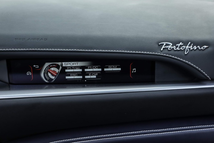 The other is the odd seven-speed transmission. Don't misconstrue us, it's a very good gearbox, slushing shifts in auto mode nicely and responding well to clicks of the paddle shifts, your only means of controlling it manually (the Portofino doesn't have a gear lever, instead favouring a button-shift mechanism on the centre console). But in Sport mode, it really bangs each upshift home: nice for reminding you you're in something supercar-ish, not so nice for passenger comfort if the driver decides to go on 'one'. And in full auto, it will shuffle its way into seventh at the earliest possible opportunity, hitting top gear before 50km/h is even showing. Again, it will respond well here if you depress the throttle - a little opening of the gas and it'll shift down to about fifth before accelerating off, floor it and it'll drop to second and catapult you into the middle-distance, but because it's in such a high gear all the time, it means there's always a delay while you wait for it to make up its mind about which lower cog it needs. Again, this is a minor thing and you can work around it oh-so-easily by staying permanently in manual mode (which we did), but it needs to be borne in mind if you're keeping the car in 'Auto' for long periods of time.