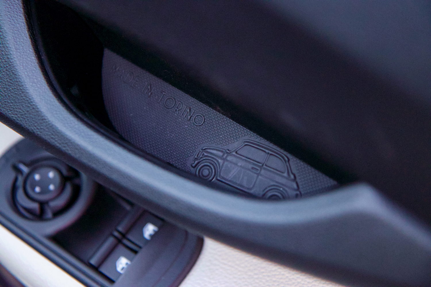 In front of you is a neat seven-inch digital instrument display mounted in a 1950s-style binnacle, while to the left is the big central touchscreen, which has expensive-looking graphics and a tolerably sensible menu layout. Underneath there's a rank of physical buttons that control the heating and air conditioning, and beneath that there's a small, open shelf. On lower-spec cars, this is just that - a shelf - but in the La Prima, it's a wireless phone charging pad. Not only that, but it's a wireless phone charging pad embossed with a silhouette of the city skyline of Turin, where the 500e is built (there's a conventional USB-socket in there too). Want more nice little touches? Have a look into the little scalloped door pulls, and you'll find a similar embossed image of a 1957 Fiat 500 along with the legend 'Made in Torino.' Just in case you forgot quite how Italian this car is.