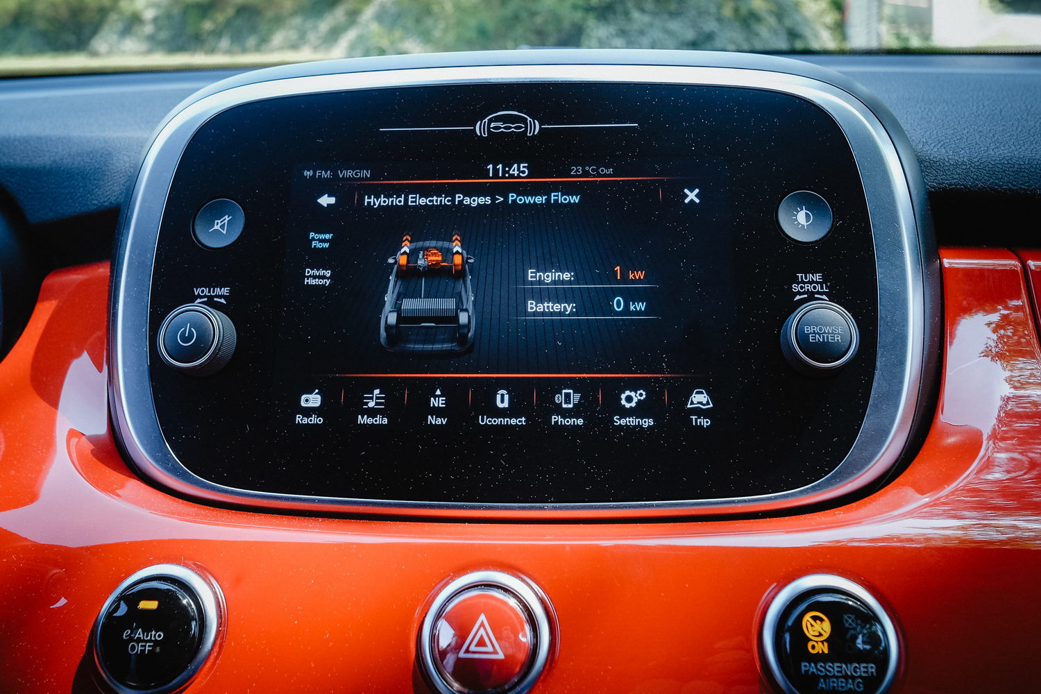 The car starts up in an electric mode, with a green 'Ready' symbol on the TFT display. If there is sufficient charge in the battery it will begin moving under electric power, and the motor's 135Nm of torque is enough to pull the 500X along. However, the petrol engine quickly awakens and kicks into play.