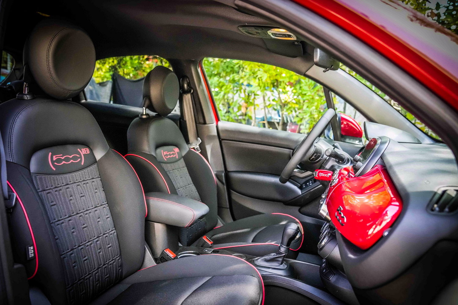 The rest of the 500X Hybrid exterior is the same as before, and is available in the optional (RED) edition in partnership with the RED charity, which supports global health issues including AIDS. Details on this version include (RED) badges on the B-pillar, black window surrounds and machined 17-inch alloy wheels. Black plastic cladding around the wheel arches and the base of the doors hint at off-road credentials, but all versions of the 500X stick with front-wheel drive. The retractable fabric roof section is part of the Dolcevita specification.