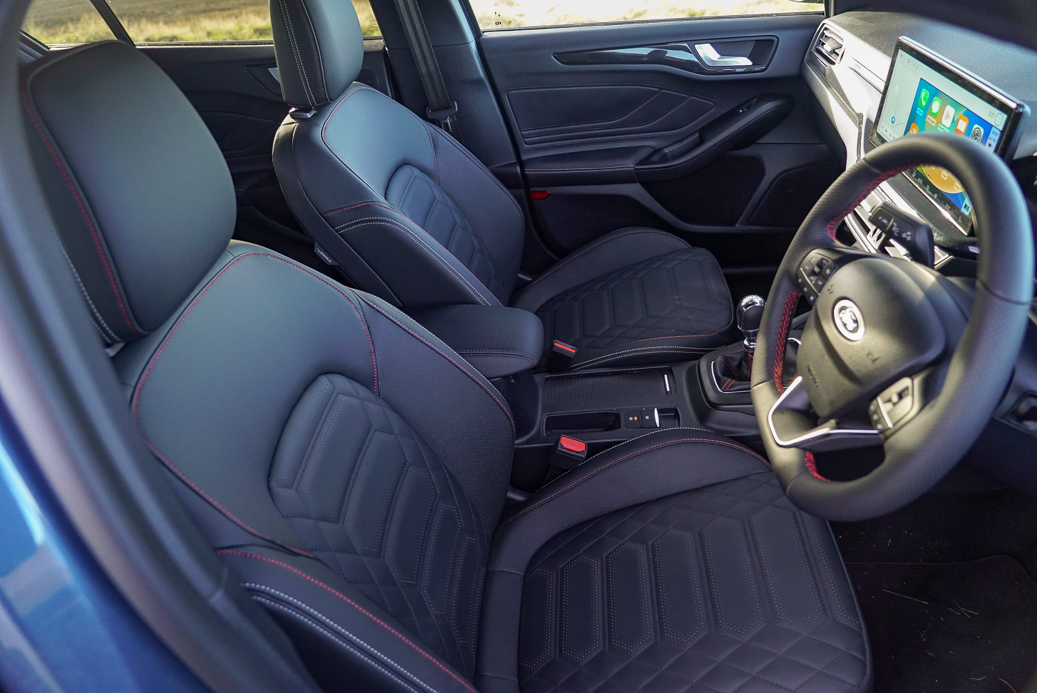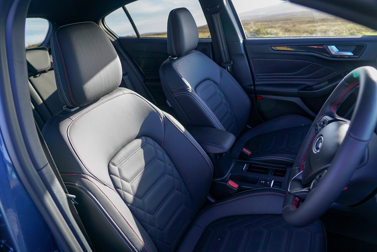 Thankfully there's a wide range of seat and steering wheel adjustment to allow you to get comfortable (or let you see the whole of the screen), while this ST-Line version has a subtly sporty feel about the cabin. Build quality is good, too, with plenty of soft-touch plastics and more upmarket materials on touch points such as the doors. Ford has also taken a leaf out of Volkswagen's book and added a flock lining to the Focus's door bins, so loose items don't rattle around in them.