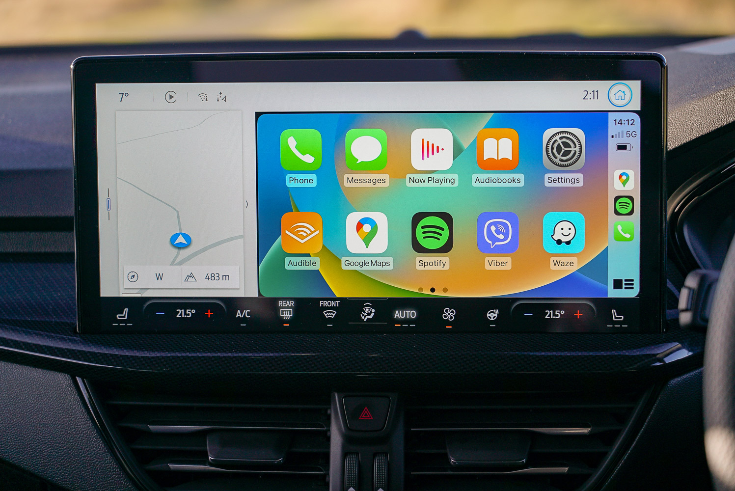 Standard equipment is generous as a result. The revised exterior lights are all LED units, while 16-inch alloy wheels, front and rear parking sensors, keyless entry and starting, heated electric mirrors, two-zone climate control, Ford's excellent Quickclear windscreen and a 13.2-inch touchscreen with SYNC 4 infotainment and navigation, Apple CarPlay, Android Auto, voice control and online connectivity are all included.