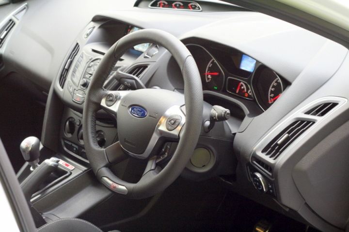 The first thing you'll notice about driving the Focus ST is the noise it makes. While we lament the personality and throaty roar of the old five-cylinder engine, Ford's attempts to give the turbocharged four-cylinder unit some character of its own have been hugely successful. A 'sound symposer' is fitted to help with that and the result is a car that sounds great from the driver's seat, even when you're not chasing the rev limiter.