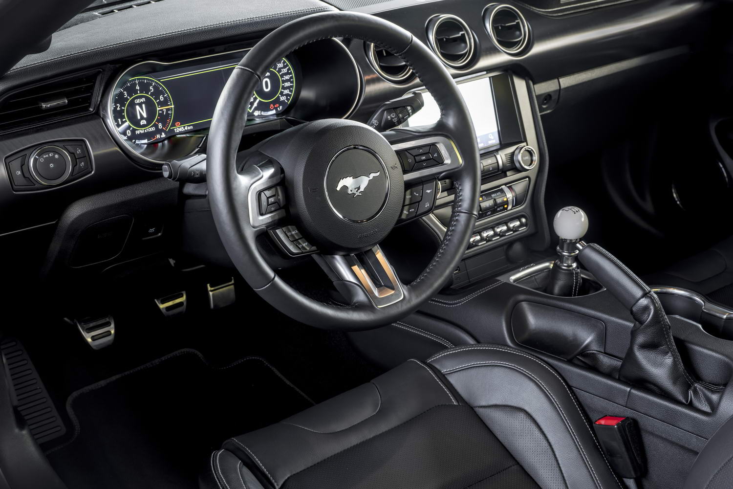 Whether you want to shift gears yourself or leave it to the computer, either Mach 1 model has an uprated gearbox oil-cooler for added durability on track. Oh, and you can 'flat' upshift in the Tremec transmission as well. Nifty.