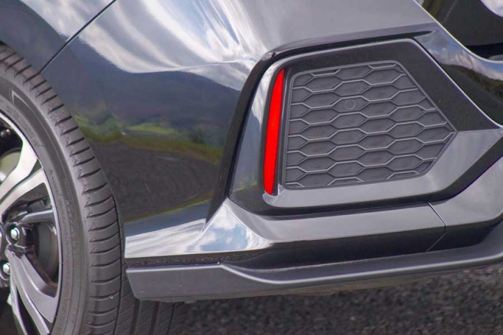 Equally impressive is the engine. Honda is a little late to the downsized turbo party, having stuck for longer than most with its more traditional petrol engines, and their high-revving VTEC variable valve control systems. By Honda standards, this new 1.0-litre turbocharged triple makes its peak power at a relatively low 5,500rpm, but you can still wring it out to closer to 7,000rpm for a little more of that classic VTEC style. Thanks to the tiny turbo, it makes a useful 200Nm of torque too (30Nm more in this manual version than in the optional CVT automatic) so there's good low-down lug, a pleasant mixture of three-cylinder warble and quiet cruising. In fact, the Civic is very refined in general, with tyre and wind noise both kept well under control.