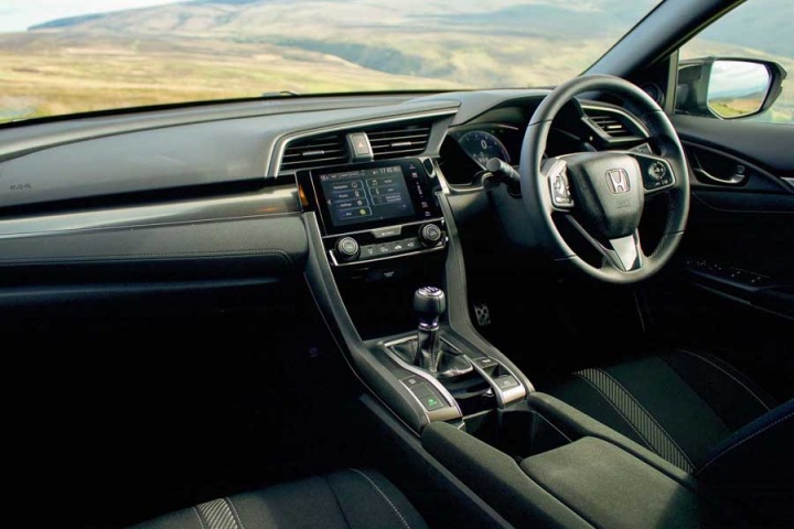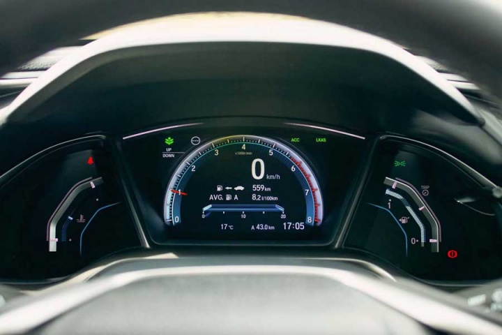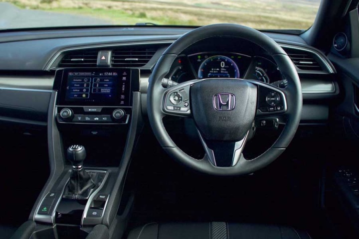 Still, as the saying goes, when you're sitting in it, you don't need to look at it and the Civic has a genuinely excellent interior. Although there are one or two hard plastic panels inside, overall quality is very good indeed, and while the all-digital instruments don't look as handsome as they do in a Volkswagen Golf's 'Active Info Display', the Honda's electronic instruments do come as standard, and they're sufficiently clear and easy to use. The front seats are also very good, comfy and supportive and without the sensation that one gets from a lot of Japanese cars that the backrest is too narrow.