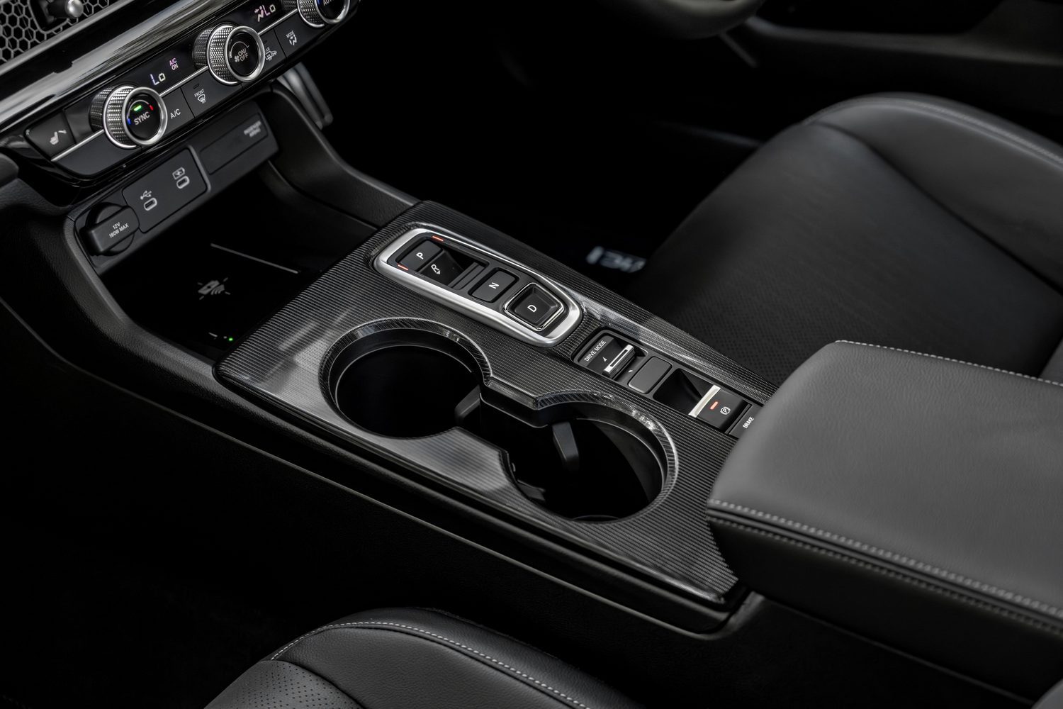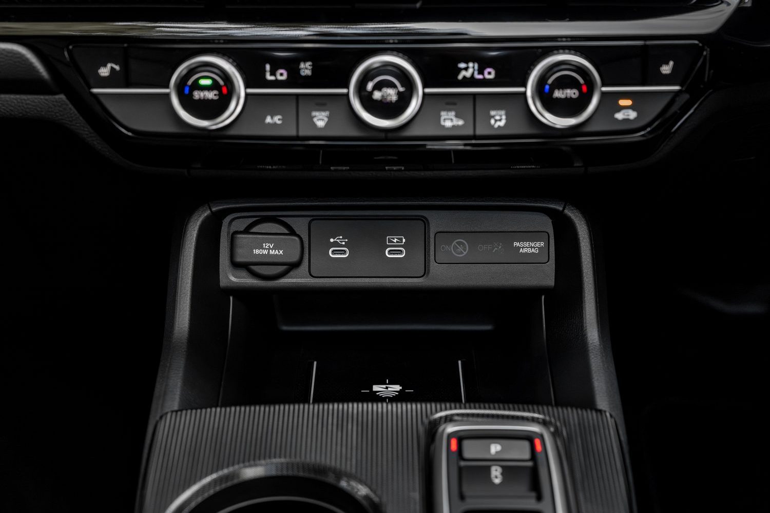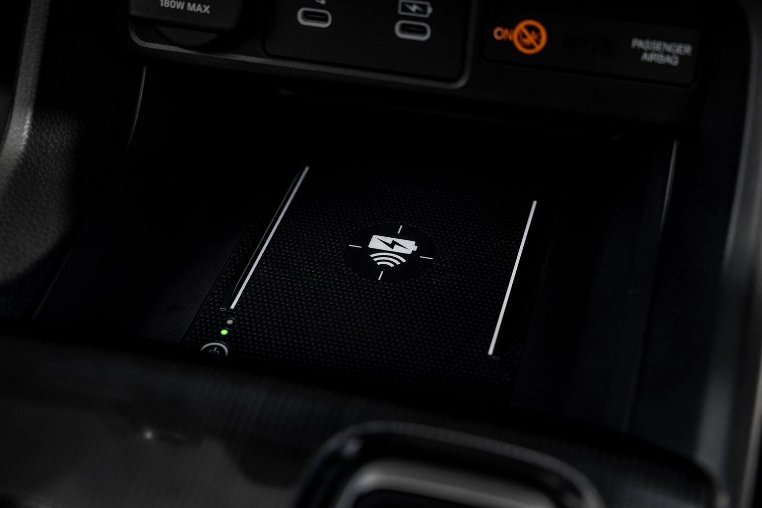There's plenty of space for humans in the front of the Civic's cabin, but for all your clutter, there's not quite as much space. You do get two good-sized cupholders in the centre console, and an open storage area in which there's a wireless phone charger.
