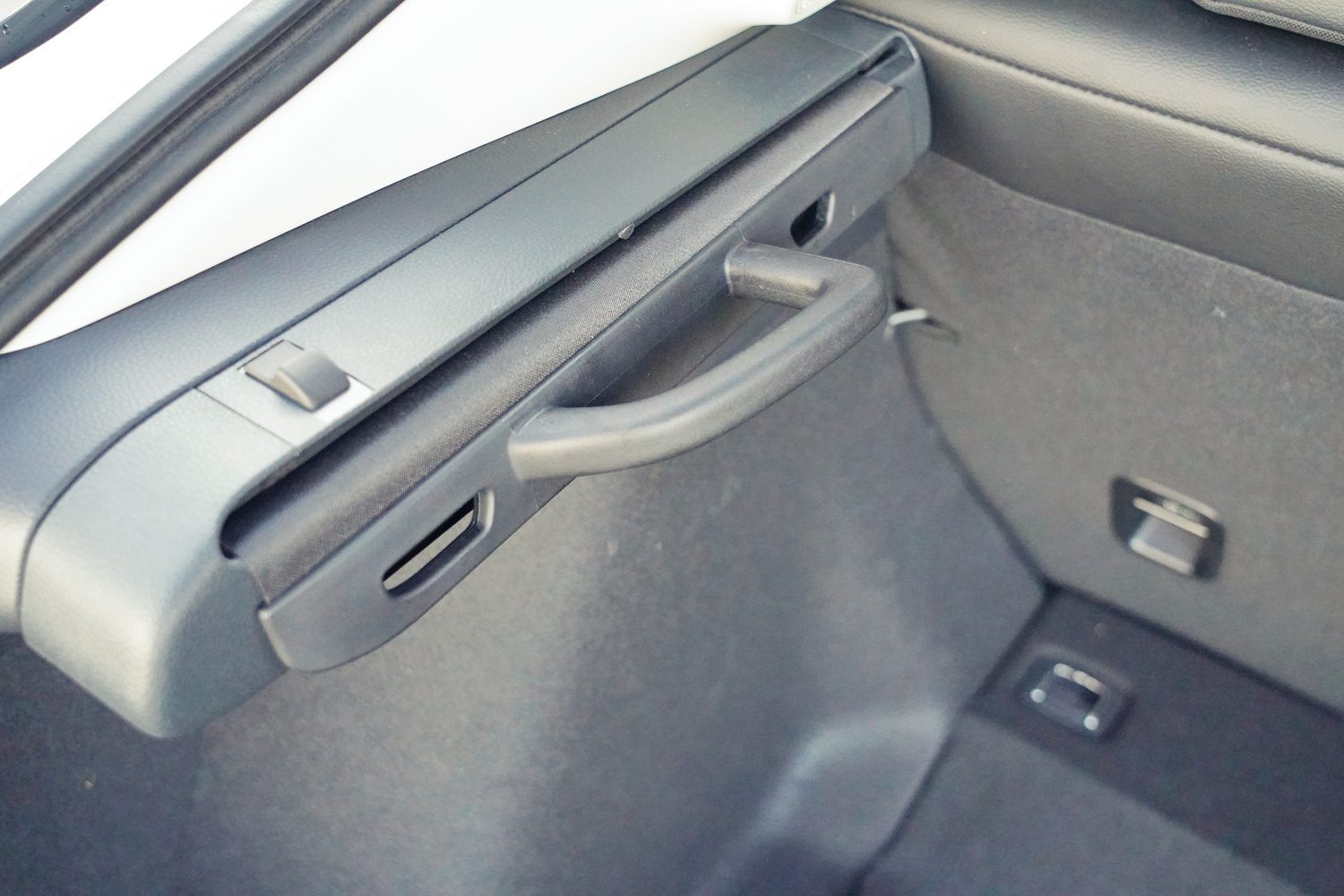 There's also a hugely clever touch - the rear luggage blind, instead of retracting fore and aft and clipping in behind the back seats, retracts right to left, meaning that you don't need to take the luggage cover out and try to stow it anywhere when using the full loadspace of the car (just as well as there's little enough under-floor storage).
