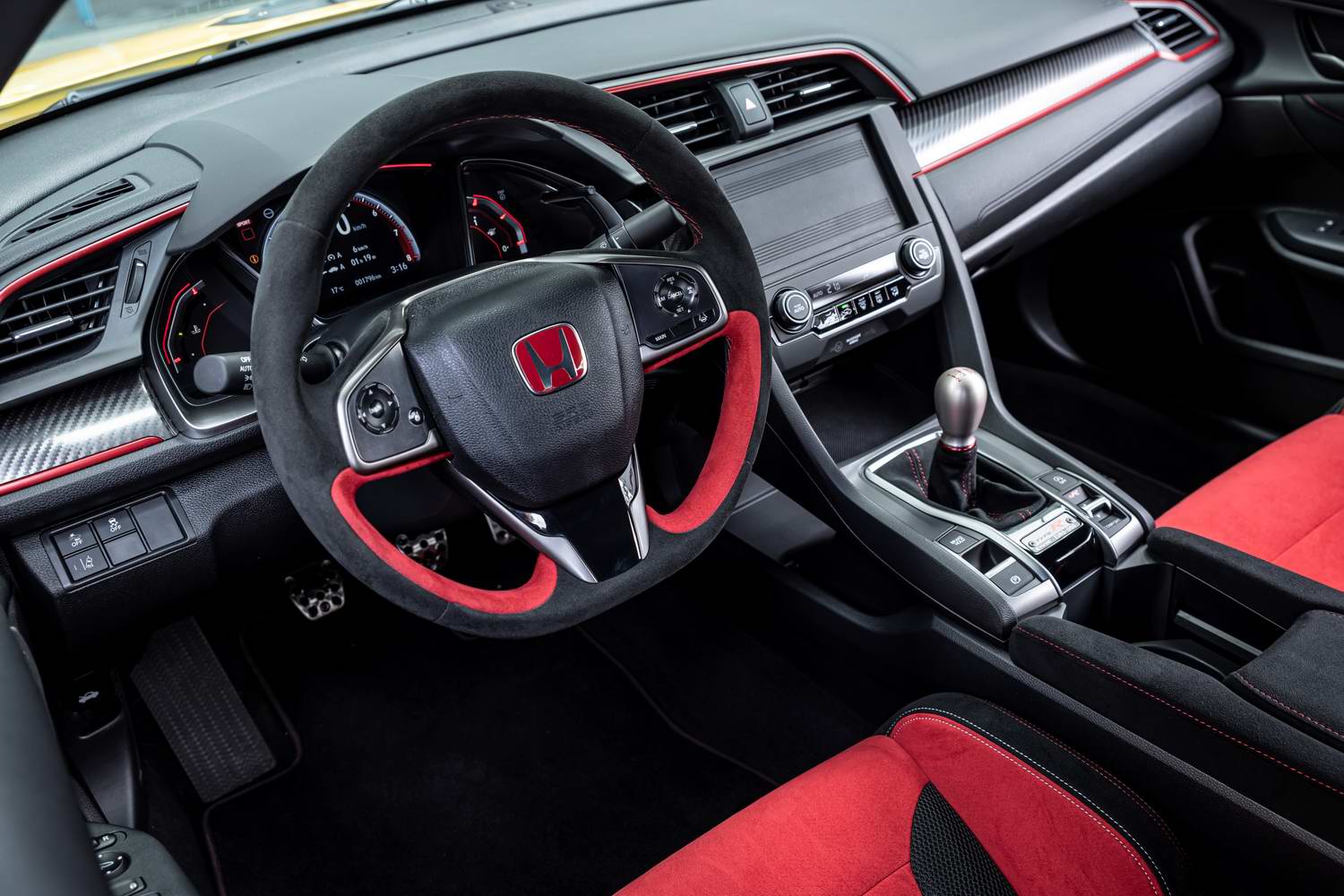Inside, the Honda Connect infotainment supports Apple CarPlay and Android Auto, so you can bypass the clunky, proprietary OS that Honda uses, while the steering wheel on all models is now wrapped in tasteful Alcantara. There's also a (no sniggering at the back, please) weighted knob for the gearchange, which is now teardrop in shape instead of the spherical affair it was before. This harks back to some classic hot Hondas, such as the 1992 NSX Type R, any number of older '90s and early 2000s CTRs and Integra Type Rs, and also the S2000 roadster. Other than that, it's as you were before... including those weird, 'part-octagon' dials for the fuel and temperature gauges that are hard to read on the move. Time the Civic went for a full digital cluster, Honda, just like the new Jazz and Honda e models.
