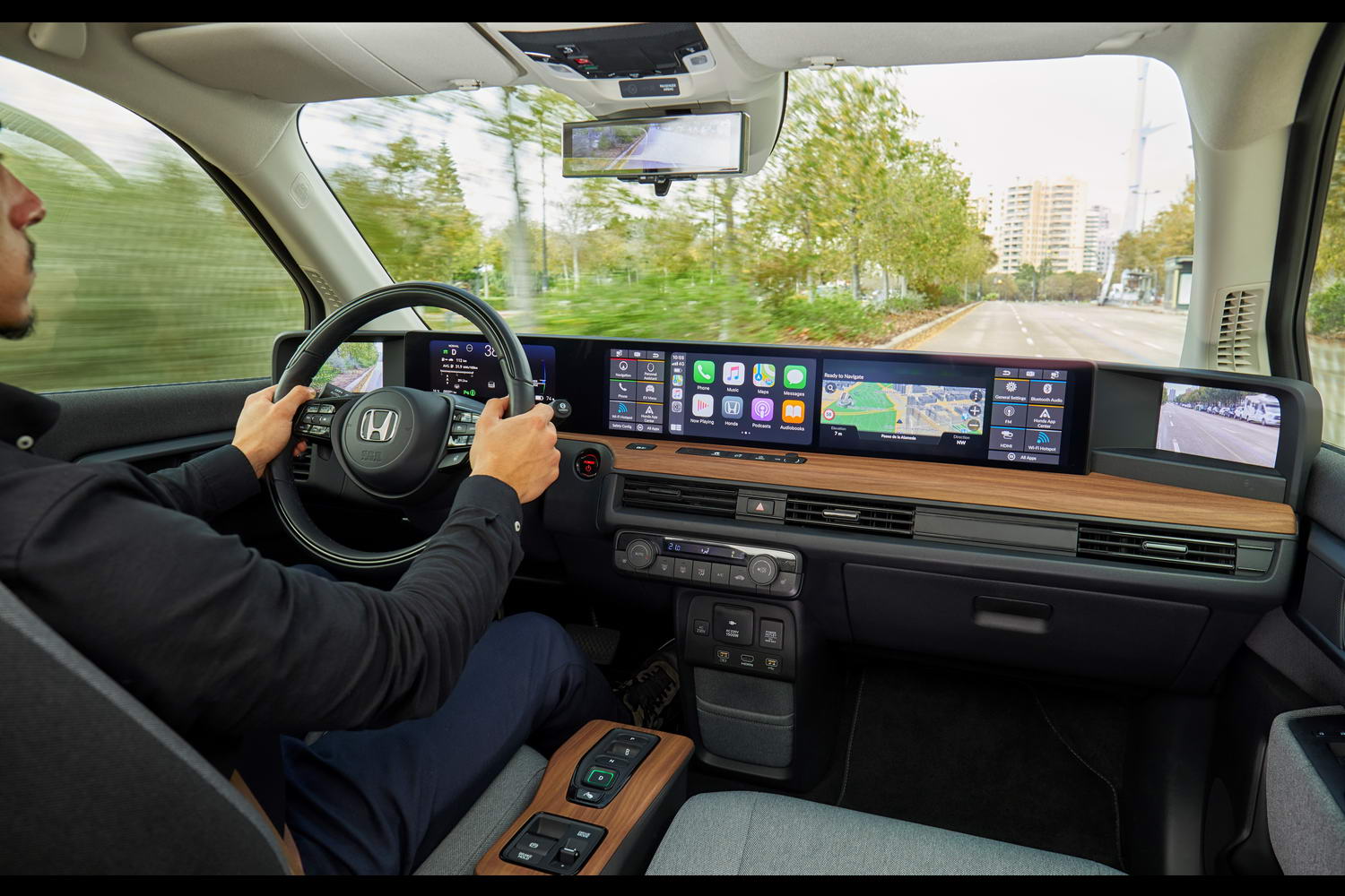 The two larger screens are great because it means you can have satnav on one and your smartphone mirrored on the other (the Honda e comes with Apple CarPlay and Android Auto). You can have pertinent driving info on one screen while your passengers scroll through the music library on the other.