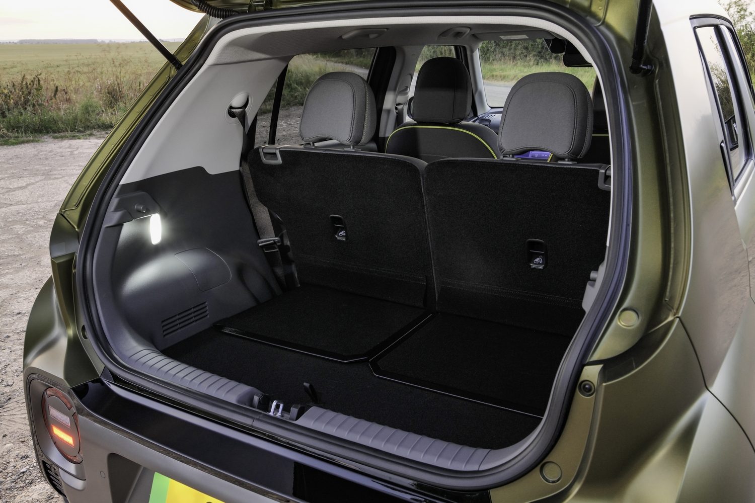 All of the above counts for the Elegance and Cross models of the Inster. The entry-level Signature has fixed rear seats that are about in the 'midway' position of the above: you get 280 litres of boot space with four people onboard. Rear seats down, the Signature still lays claim to the same 1,059 litres maximum capacity.