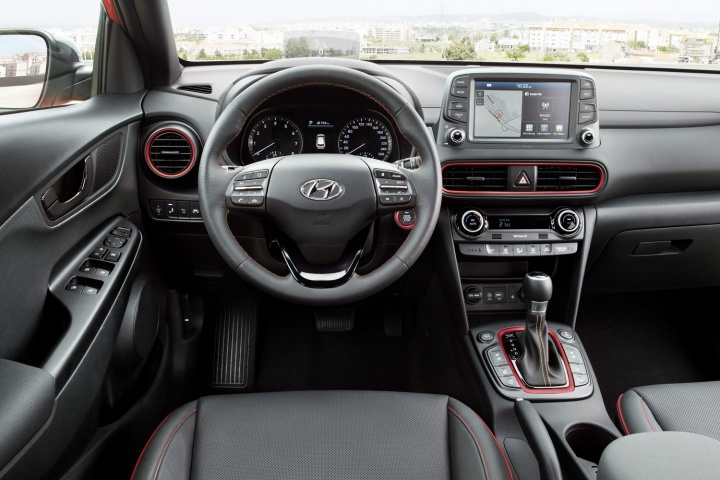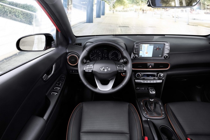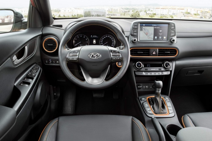 The Kona Premium starts at €25,995 and seriously enhances the specification, with niceties such as 18-inch alloy wheels, leather upholstery, Front Park Assist, Blind Spot Detection, Rear Cross Traffic Alert and cosmetic upgrades inside and out. This trim level is also available with a 1.6-litre petrol engine and dual-clutch automatic transmission for a total of €29,995.