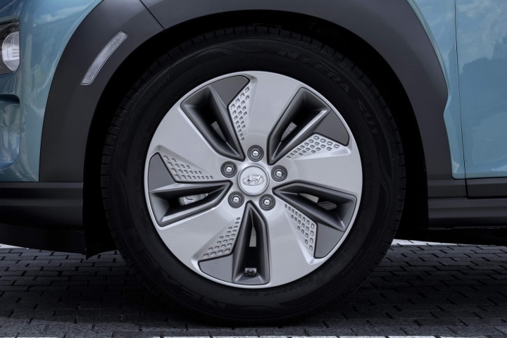 The regular Hyundai Kona has one of the most stand-out designs in the segment, and the Kona Electric is no different. Distinguishing it is a different front end design that features a blanked-off grille. It's in the top section of this that the charging port for the battery resides. LED daytime running lights remain separate from the main headlight units, placed underneath, but unlike the regular Kona, these aren't surrounded by cladding. Bespoke front and rear bumpers also add to the Kona Electric's unique look, as do the aerodynamically optimised 17-inch alloy wheels. There is still robust-looking black plastic cladding surrounding the wheel arches to emphasise its SUV credentials and, optionally, buyers can specify a contrasting roof colour.