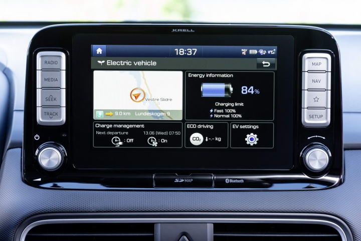 Users will be able to set scheduled charging and charging limits for the Kona. Hyundai will also offer location-based prescheduling, which stores settings and times for other locations, such as your workplace. One other interesting feature of the battery is the utility mode. This enables the user to use the electricity from the car's battery to power external devices, such as when camping. In time this system could be used as part of a smart home grid to contribute to the energy usage of your home.