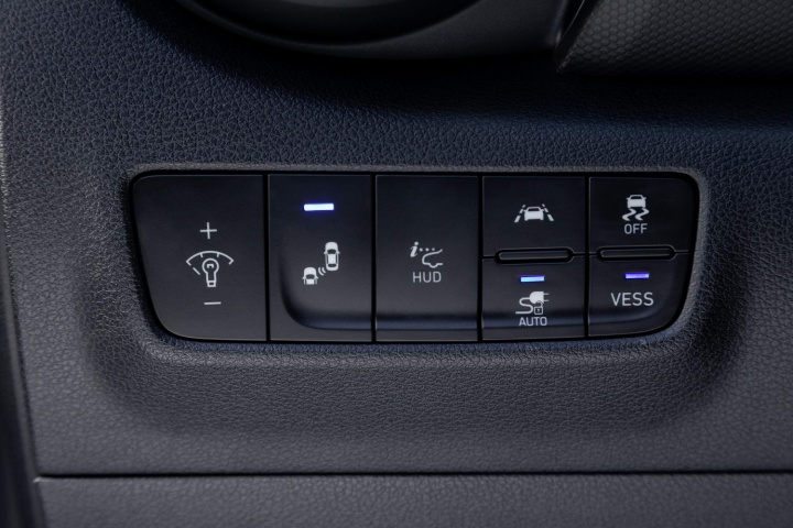 Depending on the car's specification, the centre console can also house controls for the heated steering wheel and heated and ventilated front seats, in addition to the drive mode selector, auto handbrake hold and parking sensors. A seven- or eight-inch (depending on equipment grade) freestanding touchscreen display is well placed so that you don't have to glance too far from the road to see it. Hyundai will also offer a head-up display.