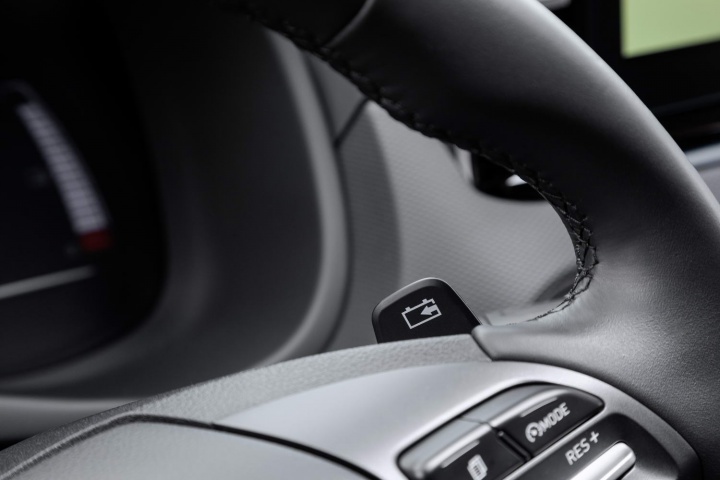 There's little need to use the car's Sport setting though, as the standard mode provides more than adequate levels of performance and helps prolong battery life. For those looking to eke every last kilometre out of it, there's an Eco+ mode. As is the norm with electric vehicles, the Kona Electric offers different stages of energy recuperation when you lift off the throttle. You can opt to coast or freewheel, and it does this reasonably well. From then you can change between three stages of regen via the small paddles on the back of the multifunction steering wheel. Hyundai claims to offer 'one pedal driving' with the Kona, much like Nissan does with the Leaf, however, in the Kona it is reliant on you using and holding the left paddle in to initiate the maximum regen with a deceleration force of up to 0.25g. It works in much the same way as the Leaf, but we feel its naming is a little disingenuous, as it's more 'one pedal and paddle' driving. The Kona also has a Smart Regenerative System that uses the radar sensor to monitor the road traffic ahead to control the regenerative braking automatically.