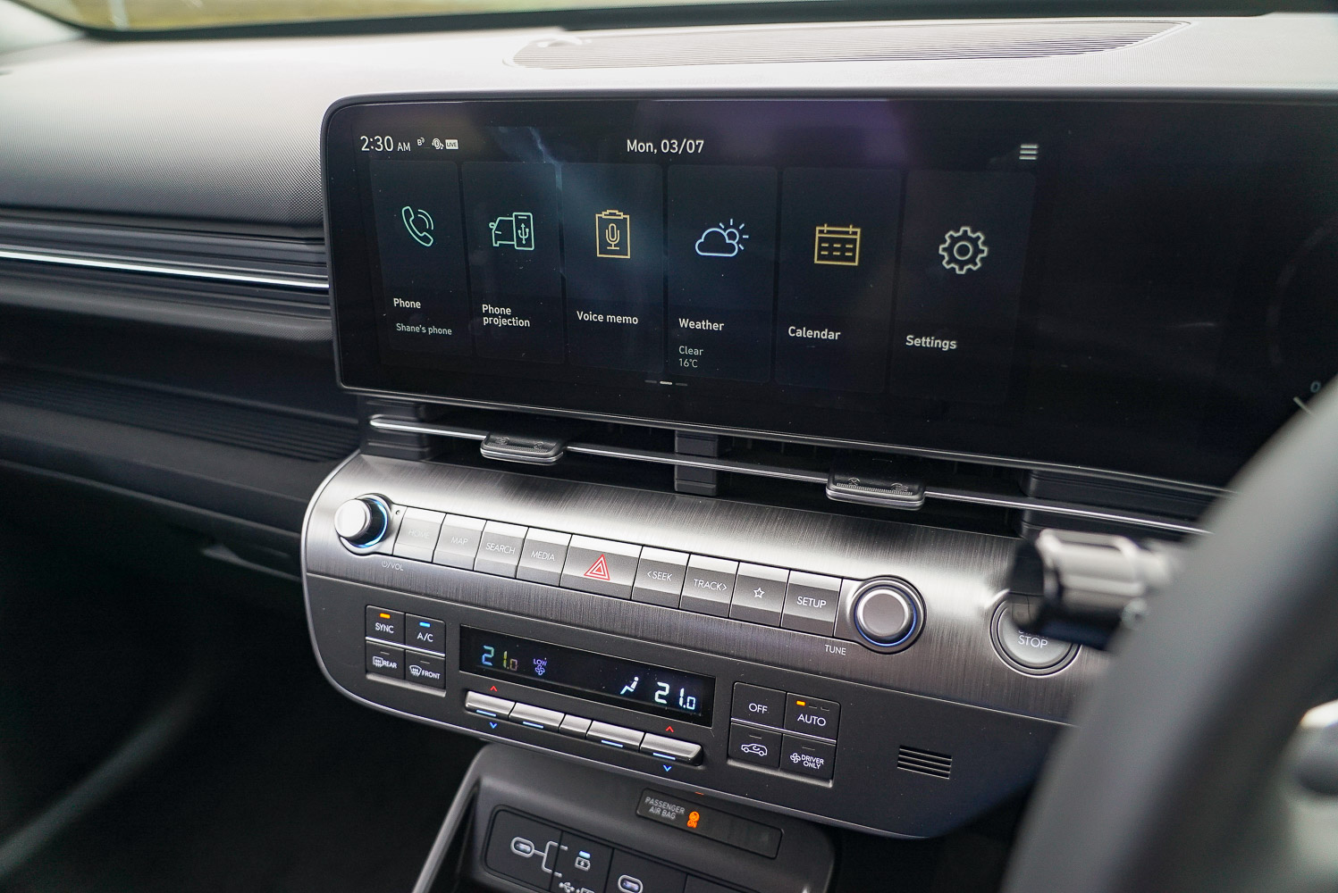 In Elegance models, there are two 12.3-inch displays in one dashboard enclosure, and it looks smart. As ever with Hyundai touchscreens, the menu is easy to find your way around and there's a huge number of features to explore - or just connect up your smartphone for mirroring as many will do. Aside from that, we're incredibly happy to see that Hyundai is sticking with separate physical switchgear for the climate control system.