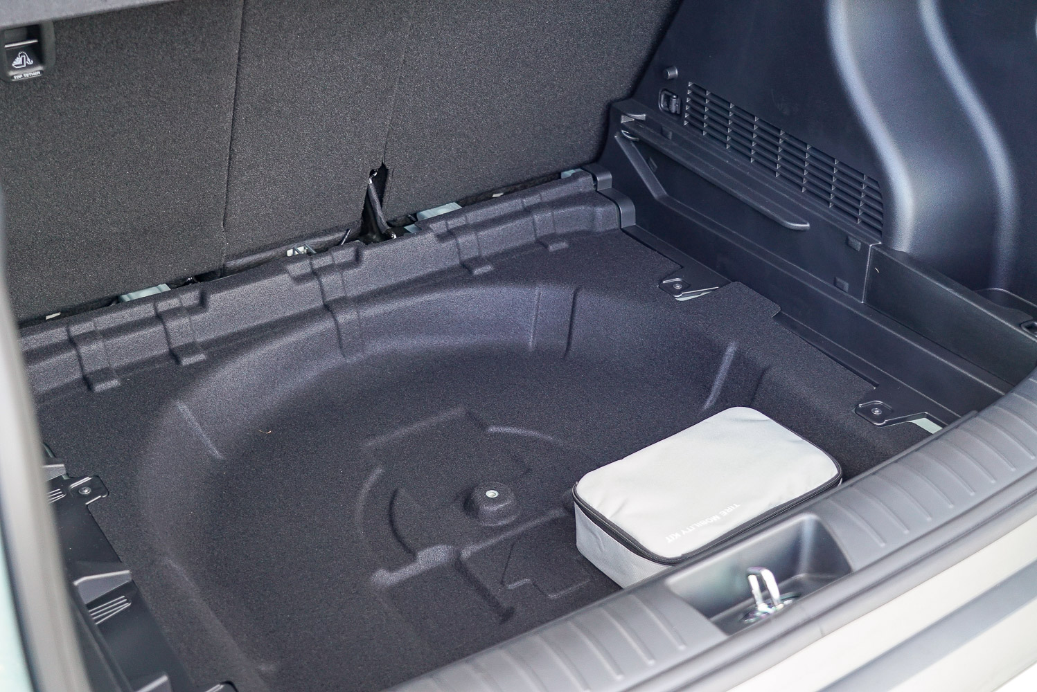 Unlike the more unconventional Hyundai Ioniq 6, the Kona's window switches are on the doors, yet it has a noticeably wide and spacious centre console - helped no doubt by the location of the drive selector on the steering column. At the front of console are two USB-C ports (neatly switchable for recharging or media use) and a tactile little cover for the 12-volt power outlet. Under that section in the Elegance model is a raised, rubberised wireless charging pad that effectively holds a phone in place.