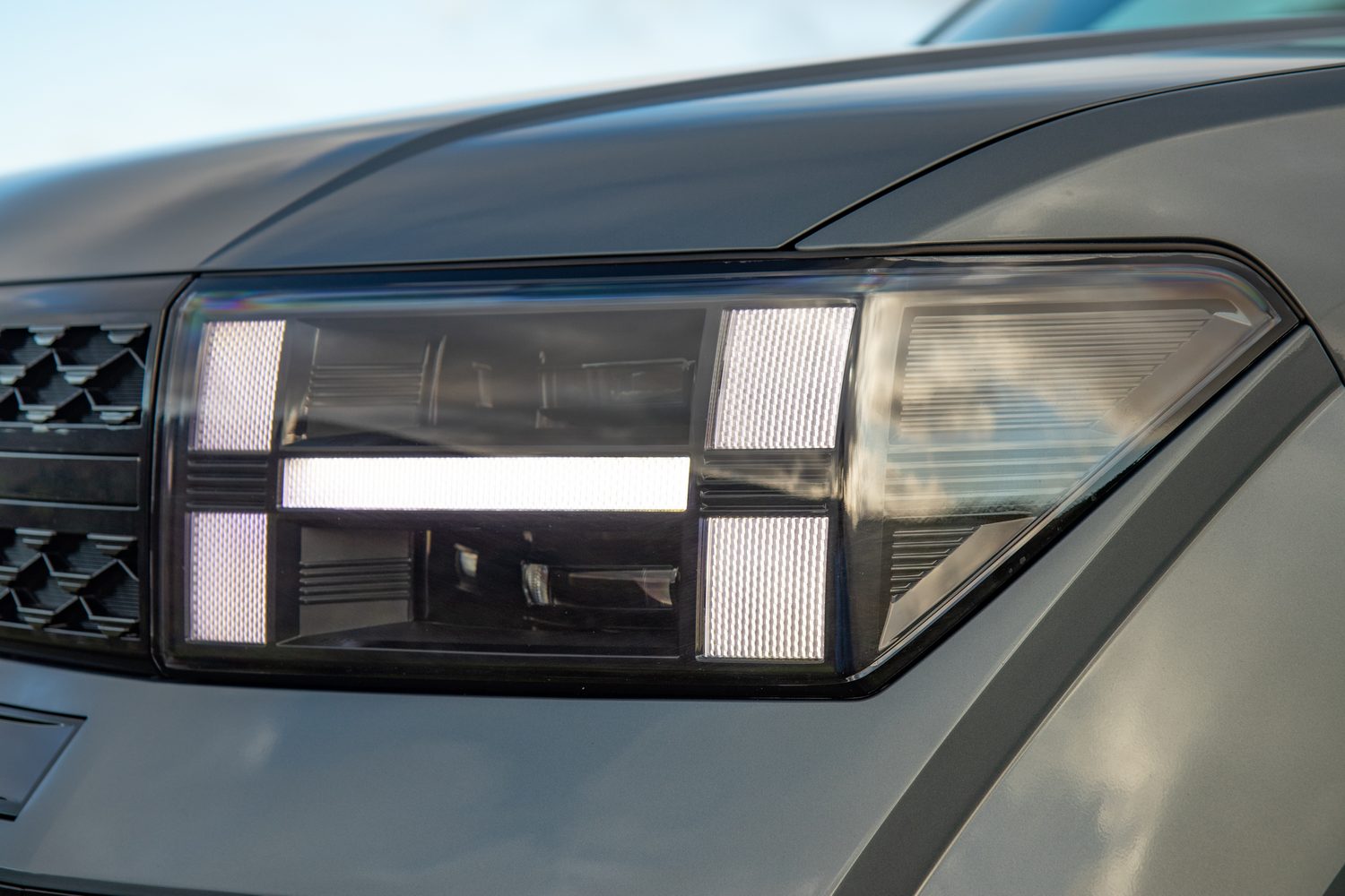 We think it makes a statement, and it very much takes influence from the pixelated design that already exists in the Hyundai Ioniq 5. Details like the daytime running lights that are constructed in a way to display the letter H for Hyundai, and the generous amounts of contrasting high-gloss black that stand out on some of the lighter colours available, help the car really stand out.