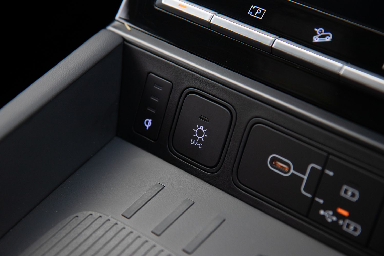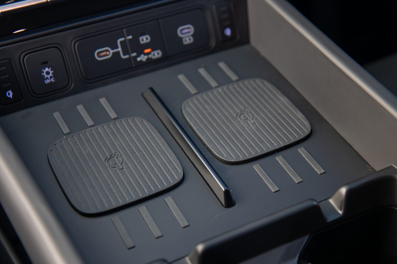 Alongside a couple of USB-C charge ports, there are also two wireless charging pads that have a neat, raised and rubberised base so your phone is less likely to move around while you're driving and so it remains charging more of the time. That's something many other car makers could take a lead from.