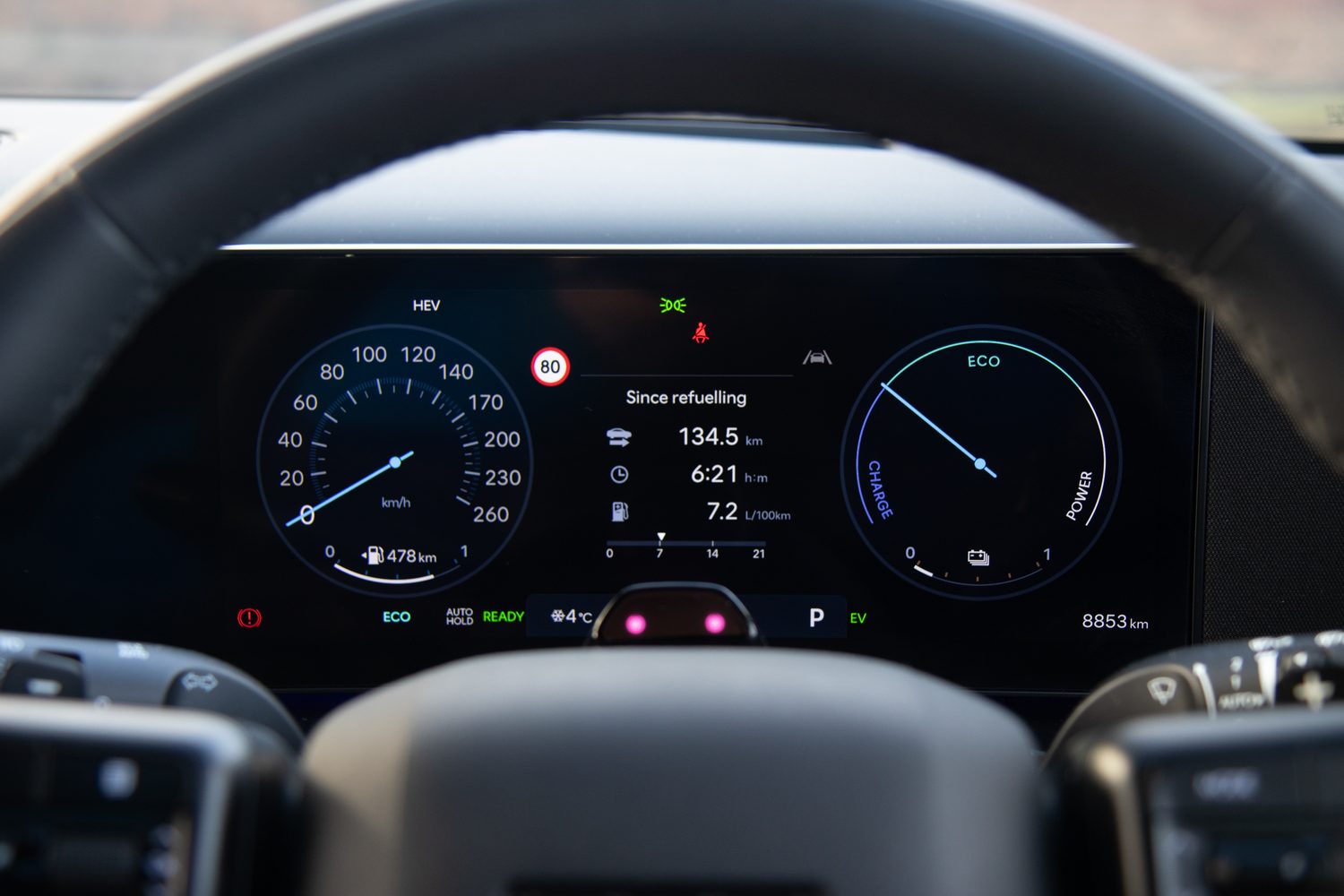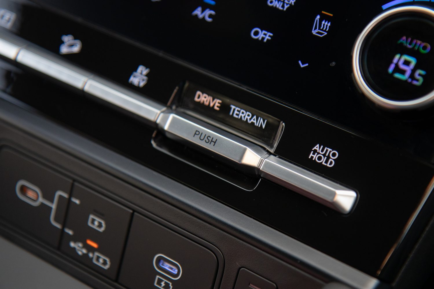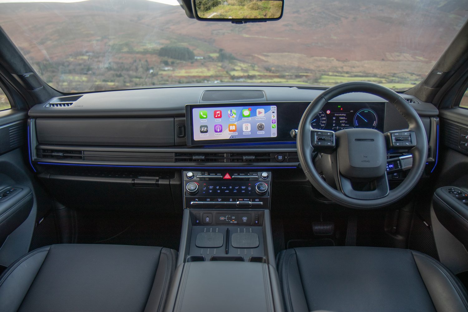 The heated seats, heated steering wheel and window demisting require use of the touch panel. Driving modes and some assistance features, including hill descent and auto brake hold, are done with proper buttons.