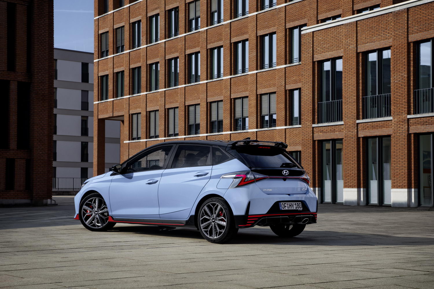 At the rear, the main feature is the WRC-style roof spoiler and the triangular F1-style fog light. There's a sporty diffuser housing the oval exhaust and more red lines so no-one can mistake this i20 for a rental company special. There's more drama to its looks than on rivals such as the Ford Fiesta ST and Volkswagen Polo GTI.