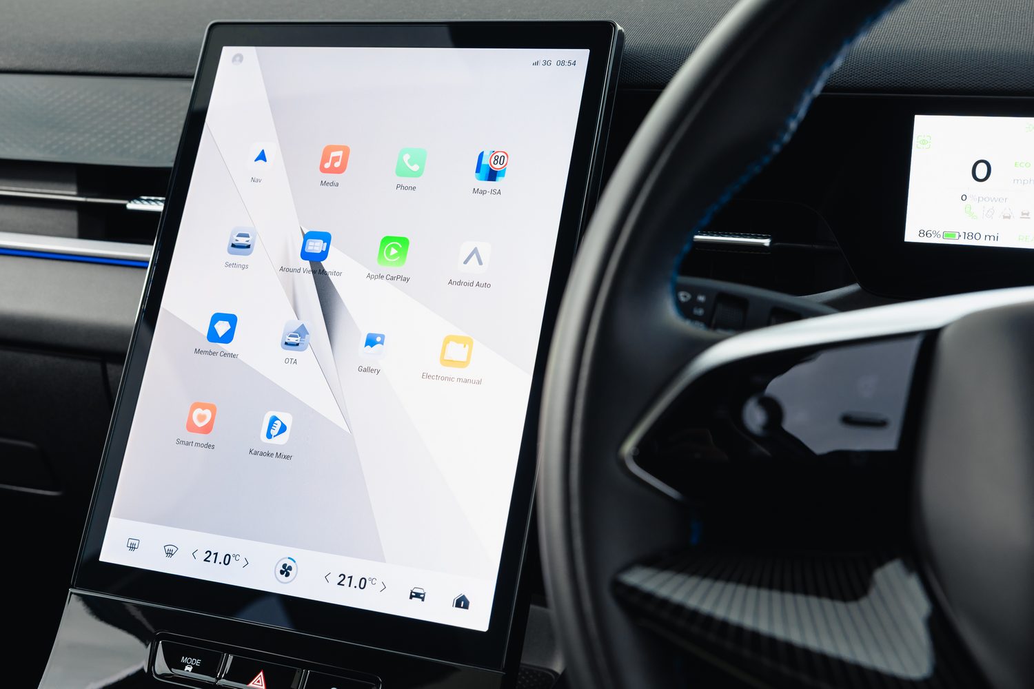 And, in the main, this works well. It can be a little frustrating trying to get to the climate controls if you're using the wireless Android Auto or Apple CarPlay functionality, and we wish there was a little more physical switchgear, but at least the trip computer in the Jaecoo E5's instrument cluster is a proper, resettable one that shows you various information you might actually want.