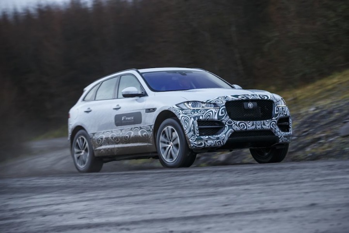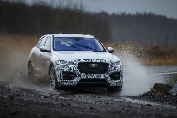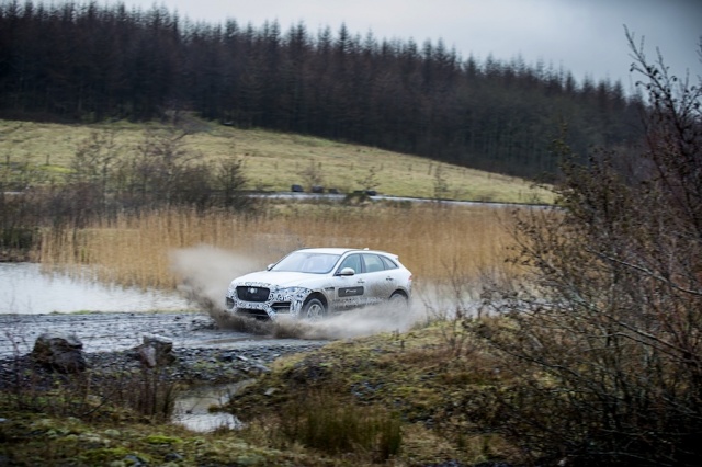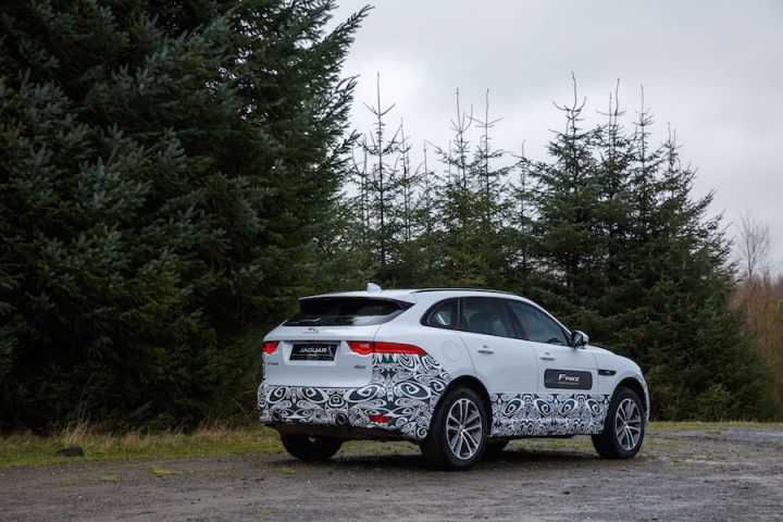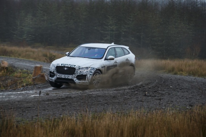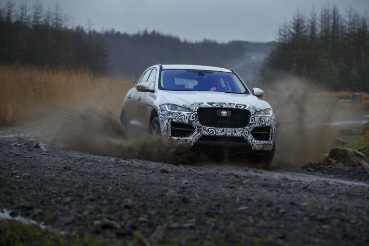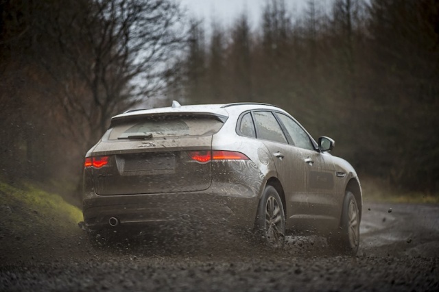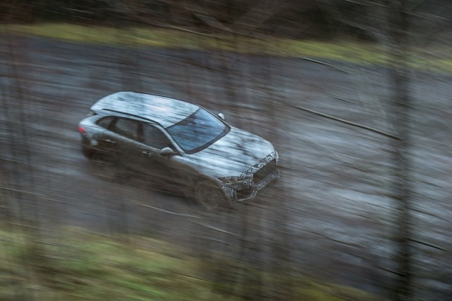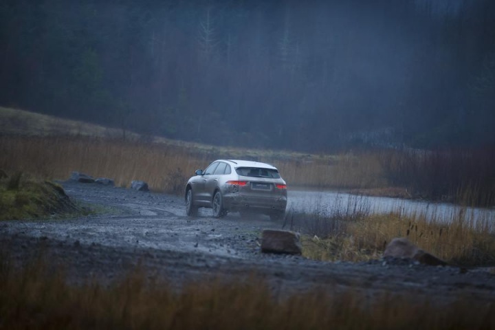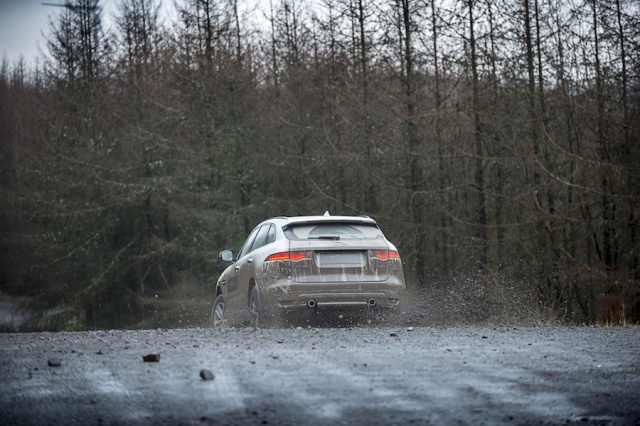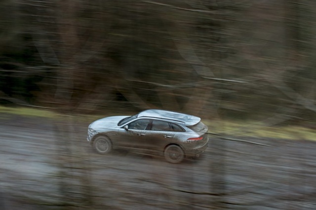 Jaguar has still not finalised the F-Pace SUV for production, so the cars we drove in an absolutely drenched South Wales - atypical weather for this part of the world - wore a little light camouflage on their lower portions. Nevertheless, Jaguar has revealed what the car will look like in promotional literature and, let's cut to the chase, it's a damned handsome machine inside and out.