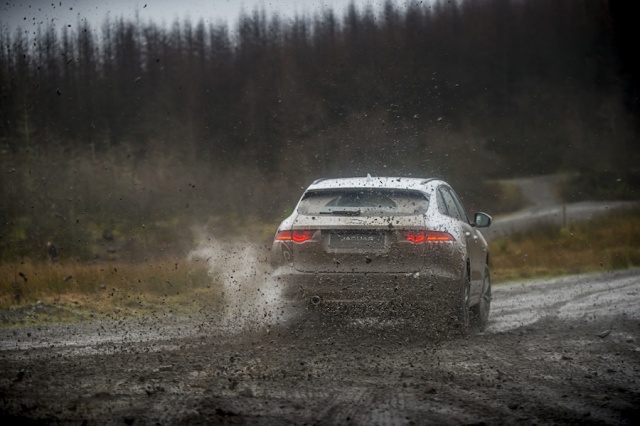Finally, we took it for some lurid, OTT power slides and even a session of doughnuts around a cluster of four cones. And the F-Pace willingly did both, with merry abandon. So enjoyable was it to sling around on a muddy, rocky plateau that we constantly had to keep reminding ourselves that this was an SUV we were driving around a soaking-wet former quarry, not a sports car on some dry, bespoke race track with loads of nice, comforting run-off. The F-Pace is ridiculously composed and unflustered even when it's way out of its comfort zone, yet - despite all this - it retains Jaguar's reputation for refinement. Even when clogging along the WRC tracks at high speed, the ride was pleasant and the noise in the cabin (considering all the debris being flung up into the chassis) was far less noticeable than it had any right to be.