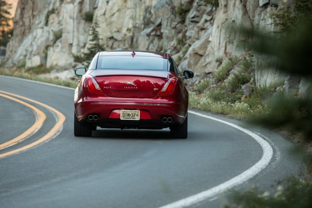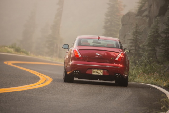 Up the effort and the big limo responds. Jaguar was confident enough in the car's ability and agility for us to take it onto the tight and technical sweeps of the Ridge Motorsports Park racetrack near Seattle - the venue for the XJR's launch. Even on the circuit, the big Jag feels at home, sniffing out cornering lines with remarkable precision and settling easily into big, tyre-smoking drifts if you're so inclined. Most impressive of all, despite being pounded around for lap after lap by over-enthusiastic motoring journalists, the cars never needed attention to the tyres or brakes.
