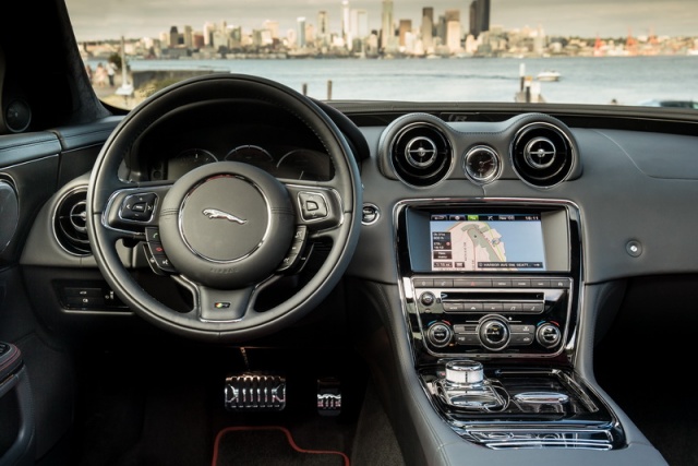 The ZF-supplied eight-speed automatic gearbox has a Quick Shift function that makes it feel more like a snappy DSG-style transmission when you're using the steering wheel paddles to shift manually, and it also senses your cornering inputs to help you hold onto lower gears in long, sweeping bends. The suspension is around 30 per cent stiffer than that of an XJ Supersport, and reads the road up to 100 times per second to adjust its damping rates to suit the conditions. Jaguar won't offer a more extreme XJR-S version because it says "more power and more stiff suspension would simply ruin the car." Amen to that.