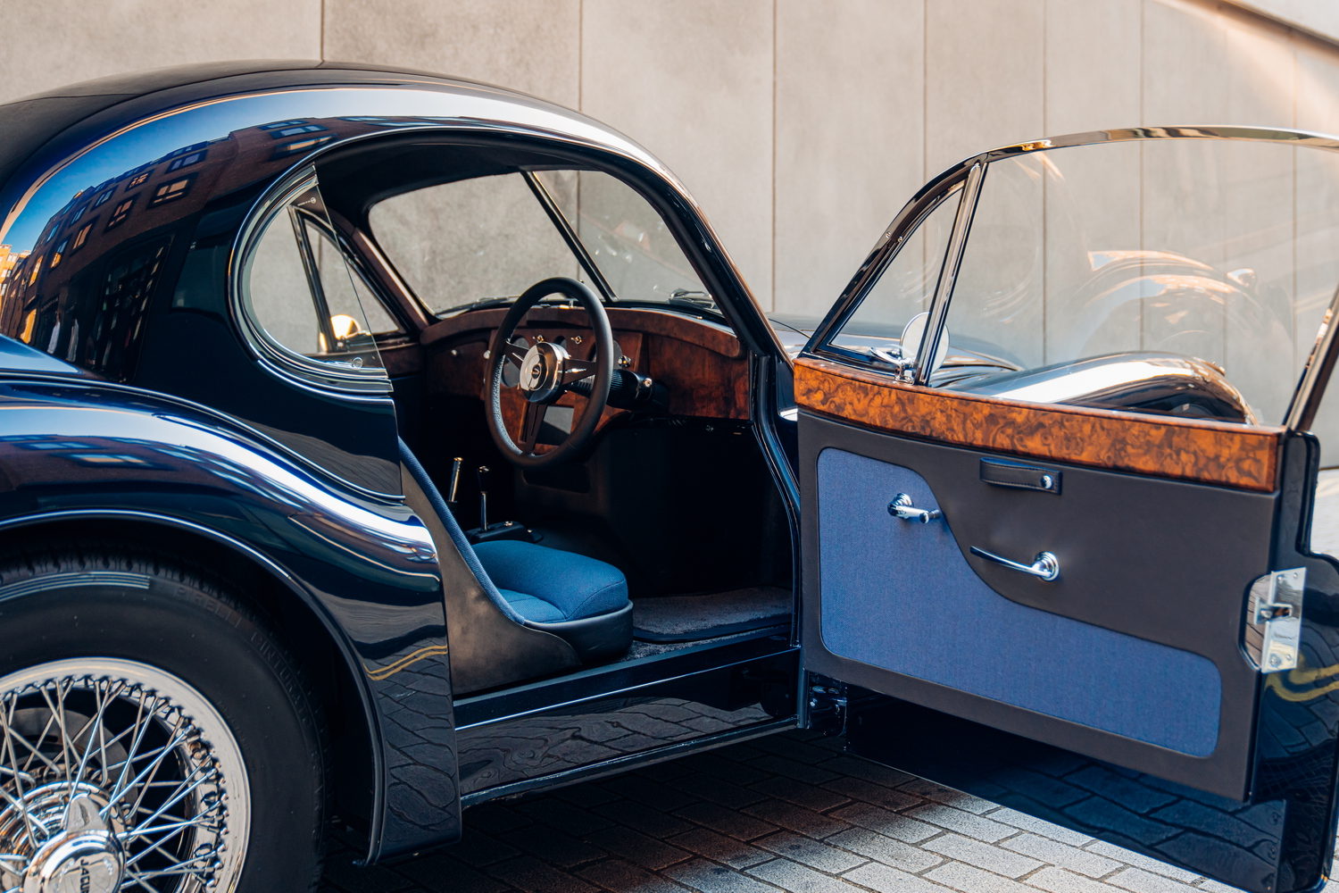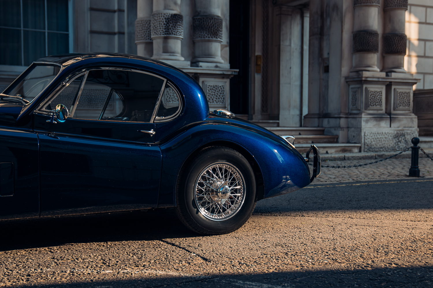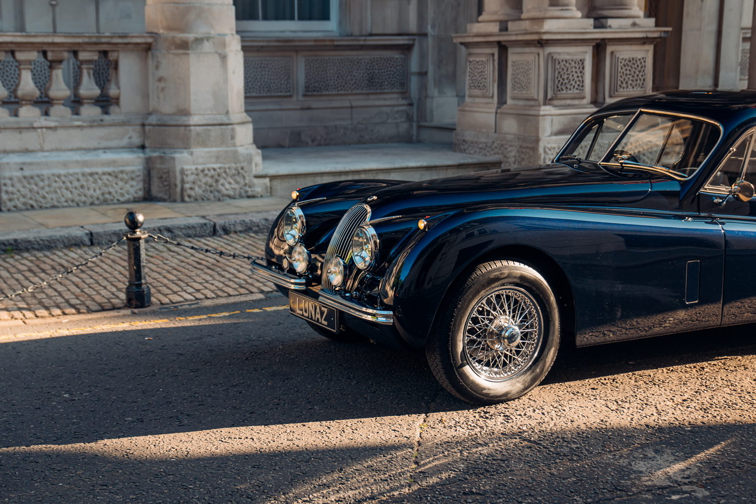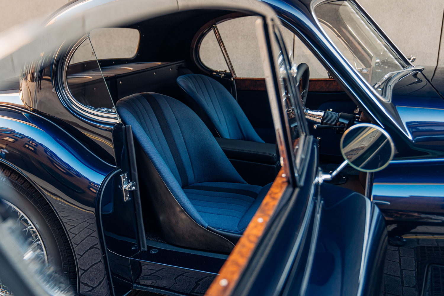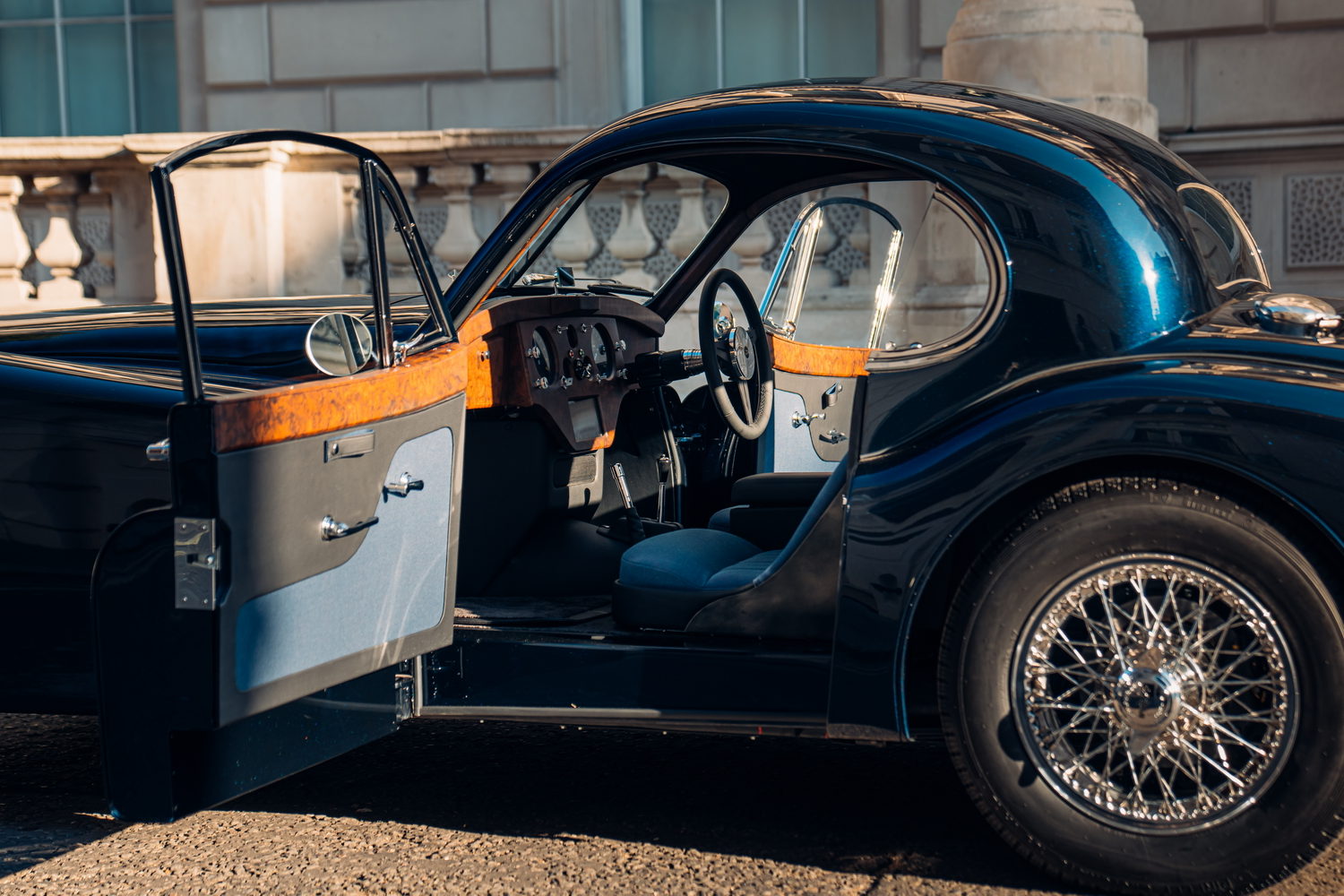 As a result, every car is unique, but they all look more or less in keeping with the original. The XK120 we drove came in a gorgeous shade of dark metallic blue, complete with wire wheels and chrome exterior trim. At a glance, it could have been a pristine, completely original XK120. At least from a distance. Look closely, though, and you would spot the subtle Lunaz logos designed to look like club or rally badges, and the modern disc brakes lurking behind the wheels.