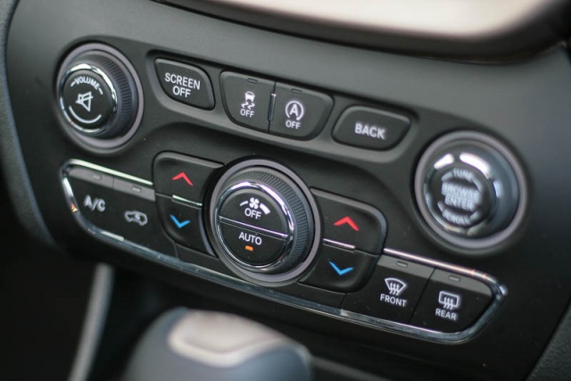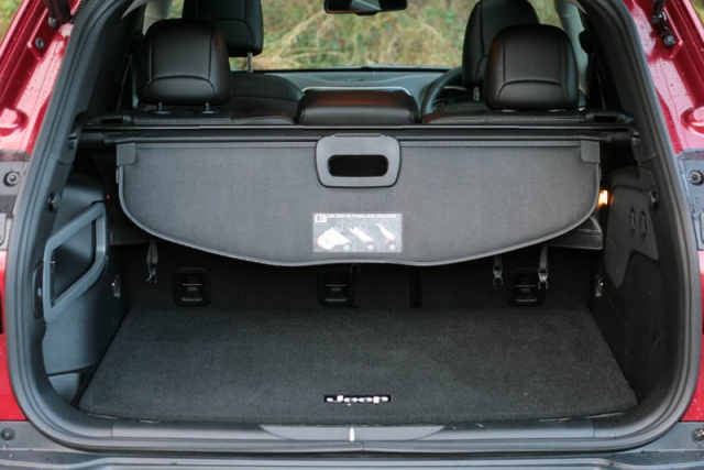 Nice enough though? Well, that's another story. If you compare it to mass-market rivals such as a Honda CR-V or Hyundai Santa Fe, then yes, the Cherokee's cabin stands up pretty well. Compare it to an Audi Q5 though, which at this price level you have to, and it falls short - still too many cheap plastics on display, still not enough really premium cabin design elements. Even the lovely little silhouette of the original 1941 Willys Jeep etched into the base of the windscreen can't lift the cabin that high.