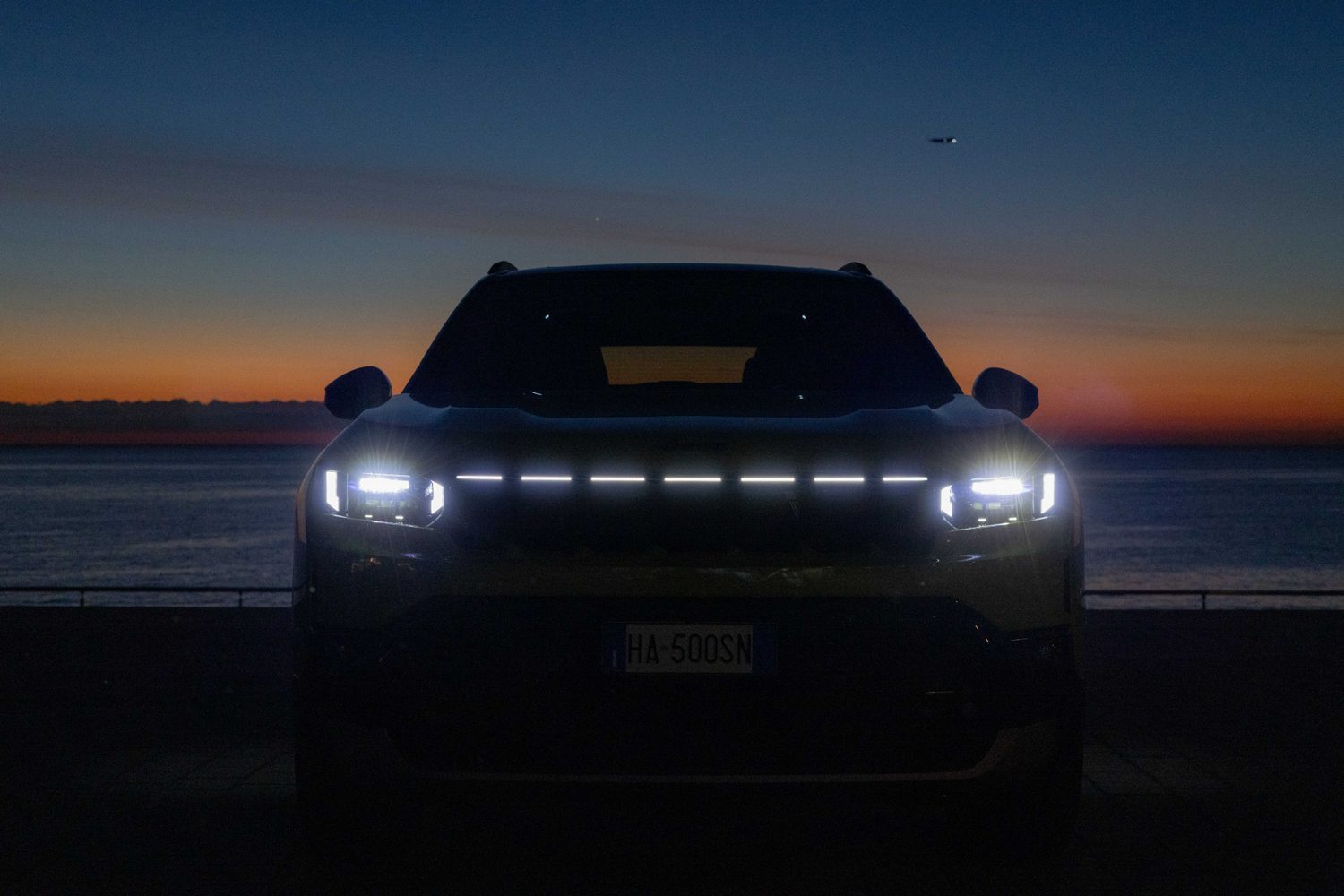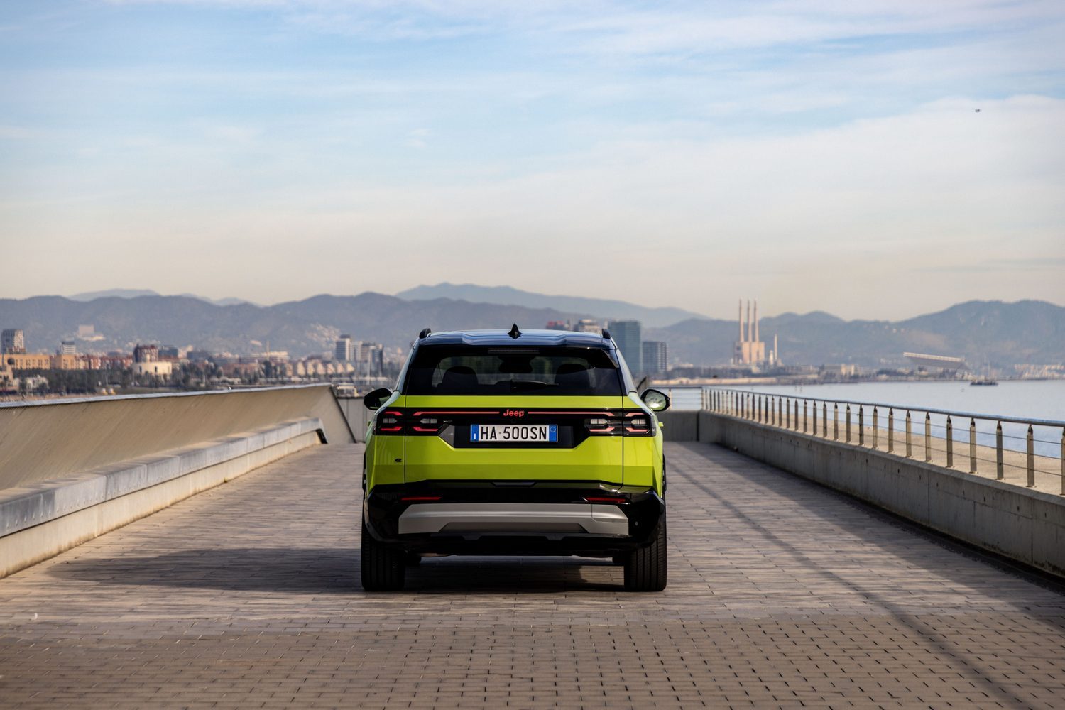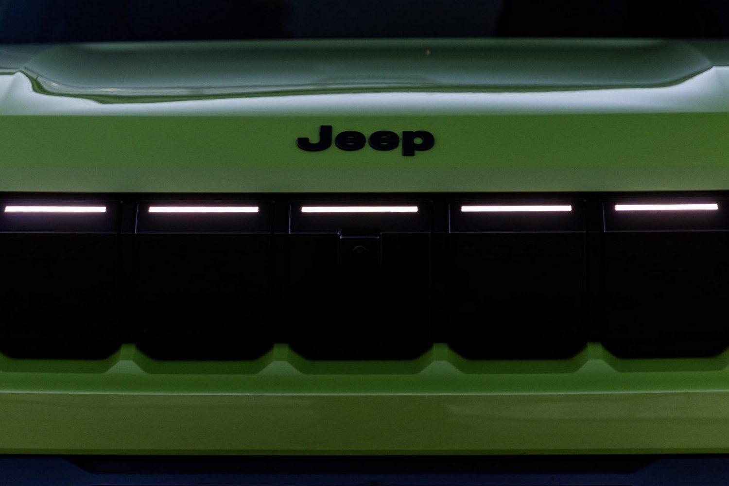 Its rear light signatures form an X-shape of sorts and have an illuminated bar that spans almost the full width of the rear, with the Jeep logo lit up at the centre.