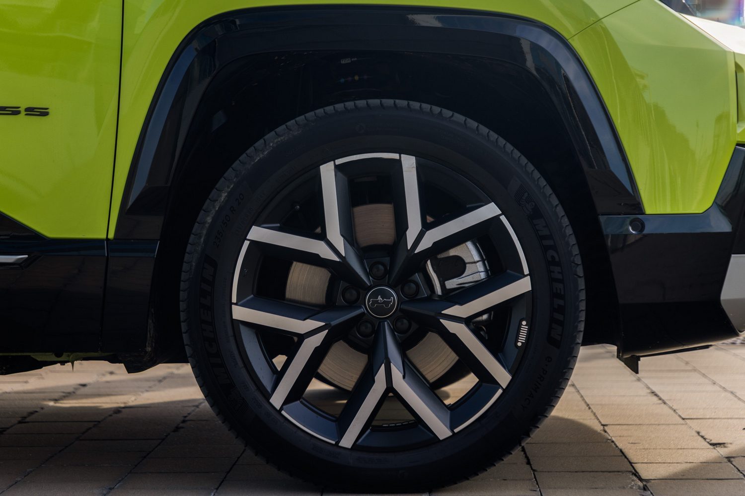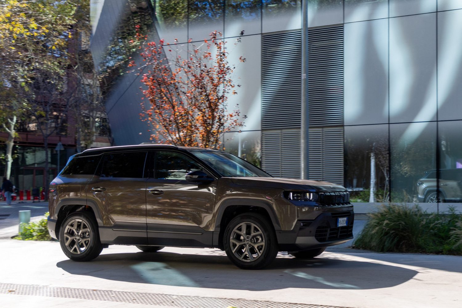 The Compass Electric sits on 20-inch wheels as standard, whereas the mild-hybrid rides on 18-inch rims. The squared-off wheel arches and sills are finished in a gloss black, and buyers can opt to have the roof and C-pillars in a matching contrasting black colour.