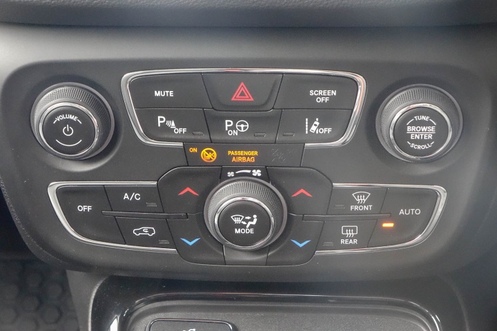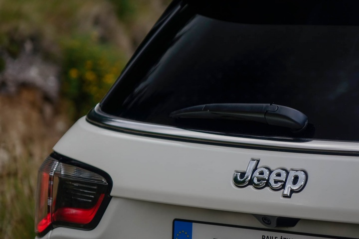 Our test car, the Compass Limited powered by the 1.6-litre diesel engine, came as standard with 18-inch alloys (optional 19s shown in the pictures), LED daytime running lights and rear lamps (optional bi-Xenon lights shown in the pictures...), leather upholstery, heated and electrically adjusted front seats, heated leather steering wheel, dual-zone climate control, front and rear parking sensor system and park assist, cruise control and speed limiter, automatic lights and wipers, electric folding door mirrors, a powerful (560W) BeatsAudio stereo with a subwoofer in the boot, 8.4-inch touchscreen system with satnav, Bluetooth, DAB radio, Apple CarPlay and Android Auto and lots more, including an impressive arsenal of active safety. Options other than those mentioned include a scandalous €350 for a full-size steel spare wheel and the eye-catching white and black paint scheme.