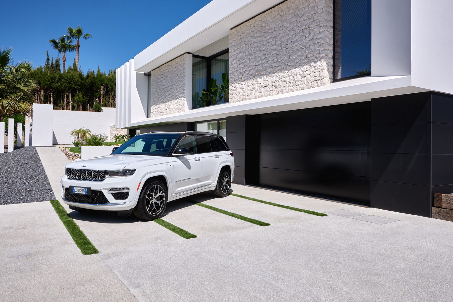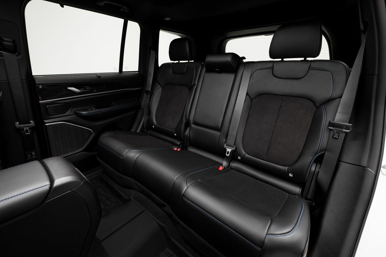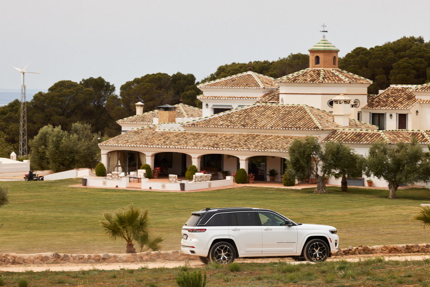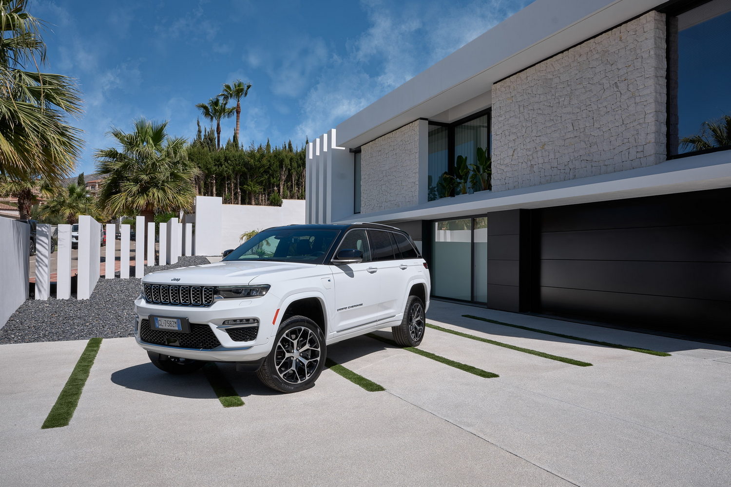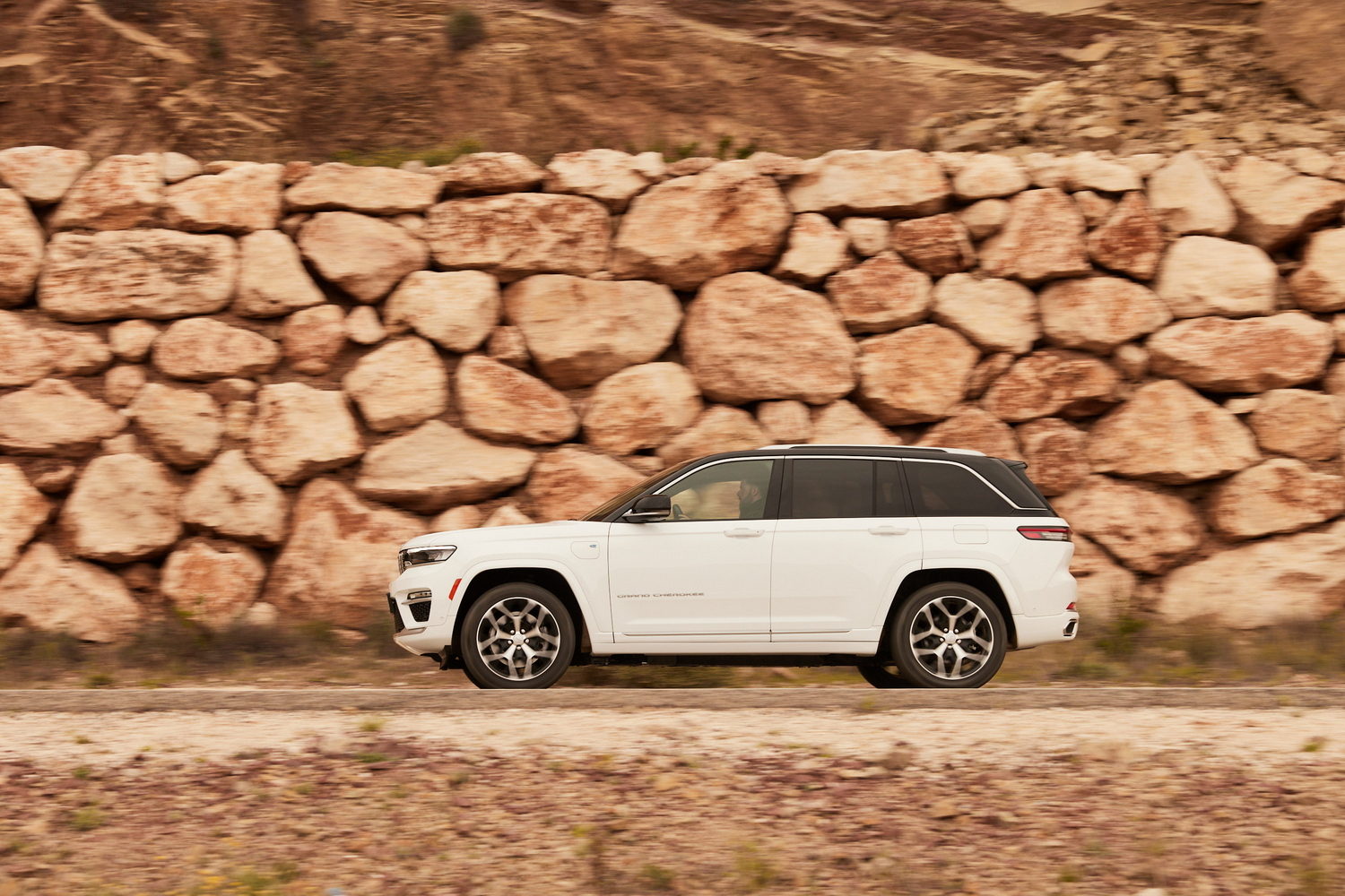 The Grand Cherokee arrives with a 17kWh battery, an electric range of 48km and a four-cylinder turbocharged petrol engine, a technical specification that doesn't quite match that of the Range Rover Sport, for example. The Range Rover also has more power - 440hp plays 380hp - but the Jeep does pull ahead on torque, at 637Nm.