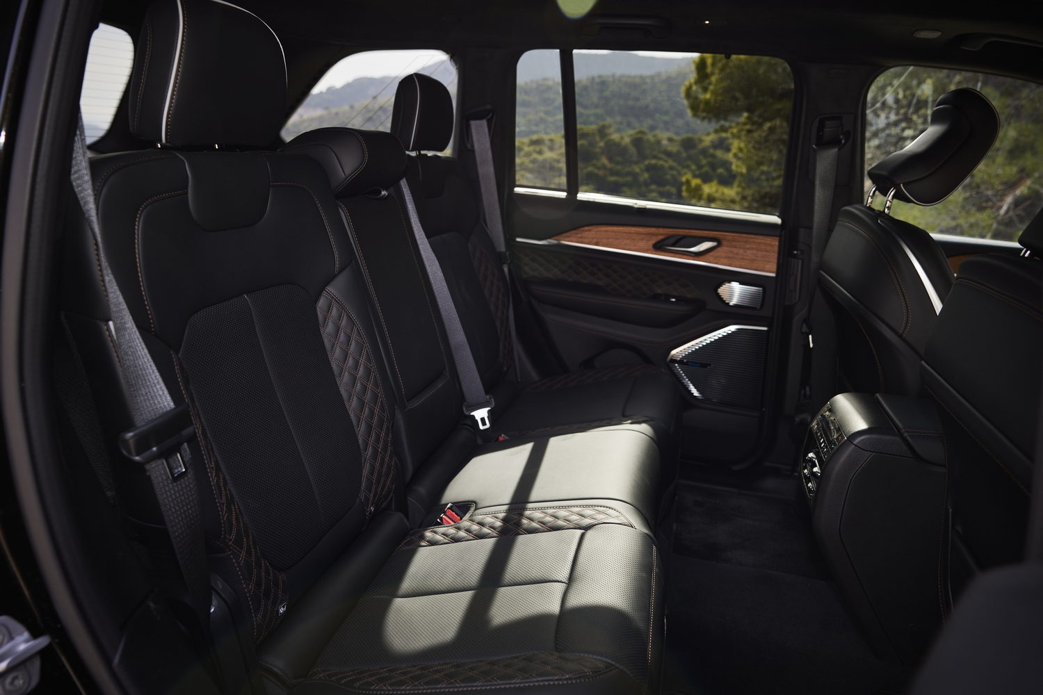 Well, in one specific area I reckon the Grand Cherokee has the Range Rover Sport beaten - the cabin. True, the latter has a lovely interior, but it's a bit stripped back and slightly stark. The Grand Cherokee, by contrast, is a little more 'Vegas' - there's lots of open-pore wood, some seriously lustrous leather and some of the best front seats you'll ever come across. The Grand Cherokee's three big digital screens (the one in front of the passenger is optional in some models, but standard in the range-topping Summit Reserve model we tested, and that's likely to be the only spec that will come to Ireland initially) make the interior look more inviting than that of the Range Rover, and it's about equal on space. Certainly, there's lounging room in the back seats, which are darned near as comfortable as the fronts.