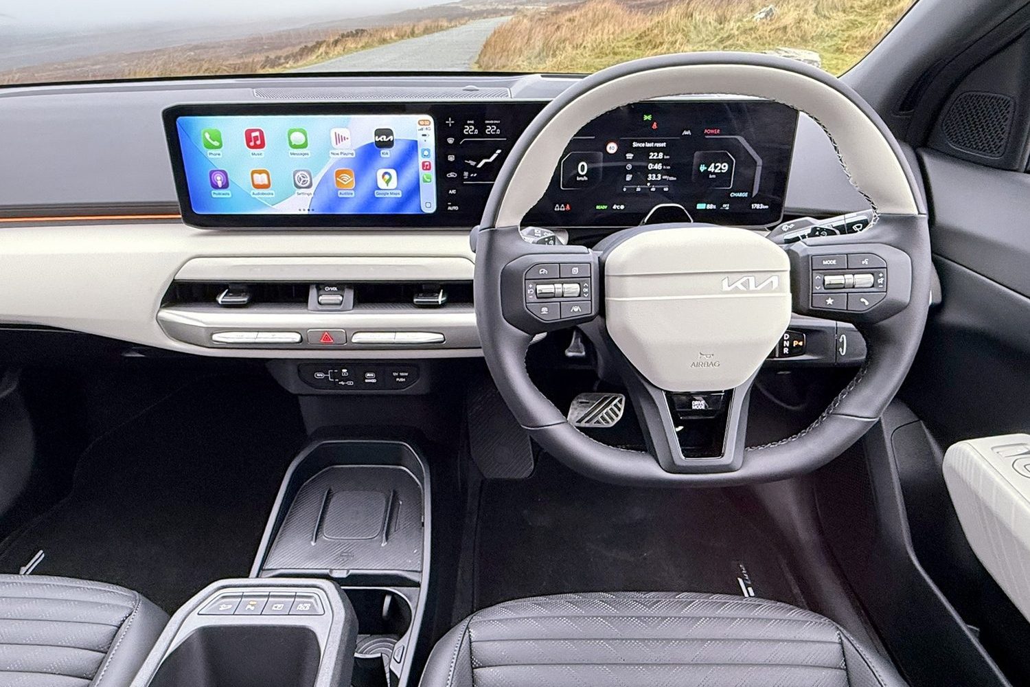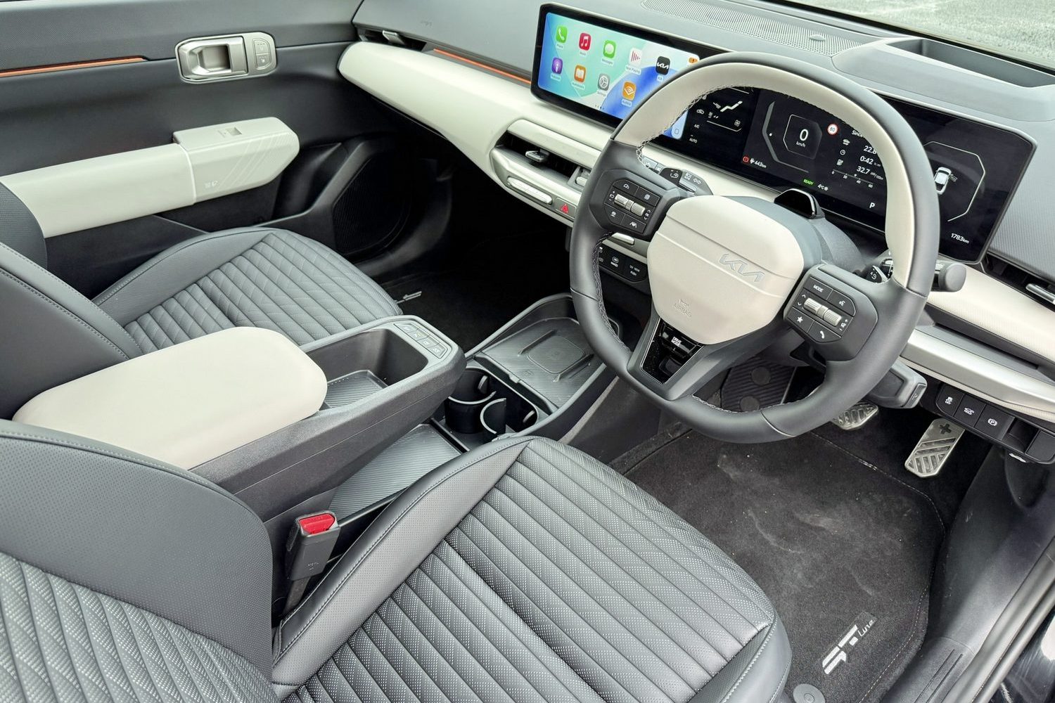 Kia has ported over the same interior style it uses elsewhere in the lineup, using a screen-dominated dashboard with plenty of physical controls and a chunky steering wheel. But when the overall effect is this good, do you really mind the repetition between models?