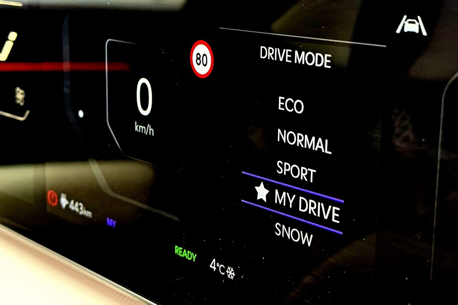 Speaking of buttons, there's also a driving mode button on the centre spoke of the three-spoke steering wheel, which allows you to cycle through the various modes.