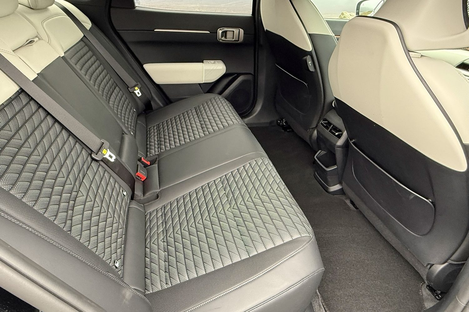Even tall passengers should find plenty of space for knees and feet, and there's slightly less of the knees-up sensation that you get in some electric cars, where the rear seat base is set too low relative to the height of the battery - and hence the floor.