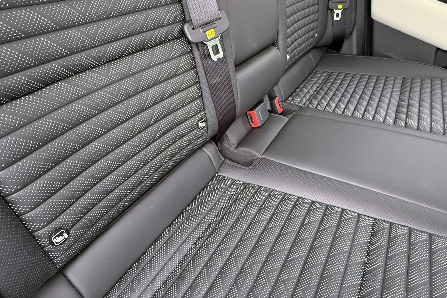 There are neat USB-C sockets built into the backs of the seats too. There are also cupholders in a folding rear armrest, and when that's tucked away there's just about useable space in the centre rear seat, although anyone tall sitting there will find the roof close to their head. There is a flat rear floor, though, so there's plenty of space for feet.