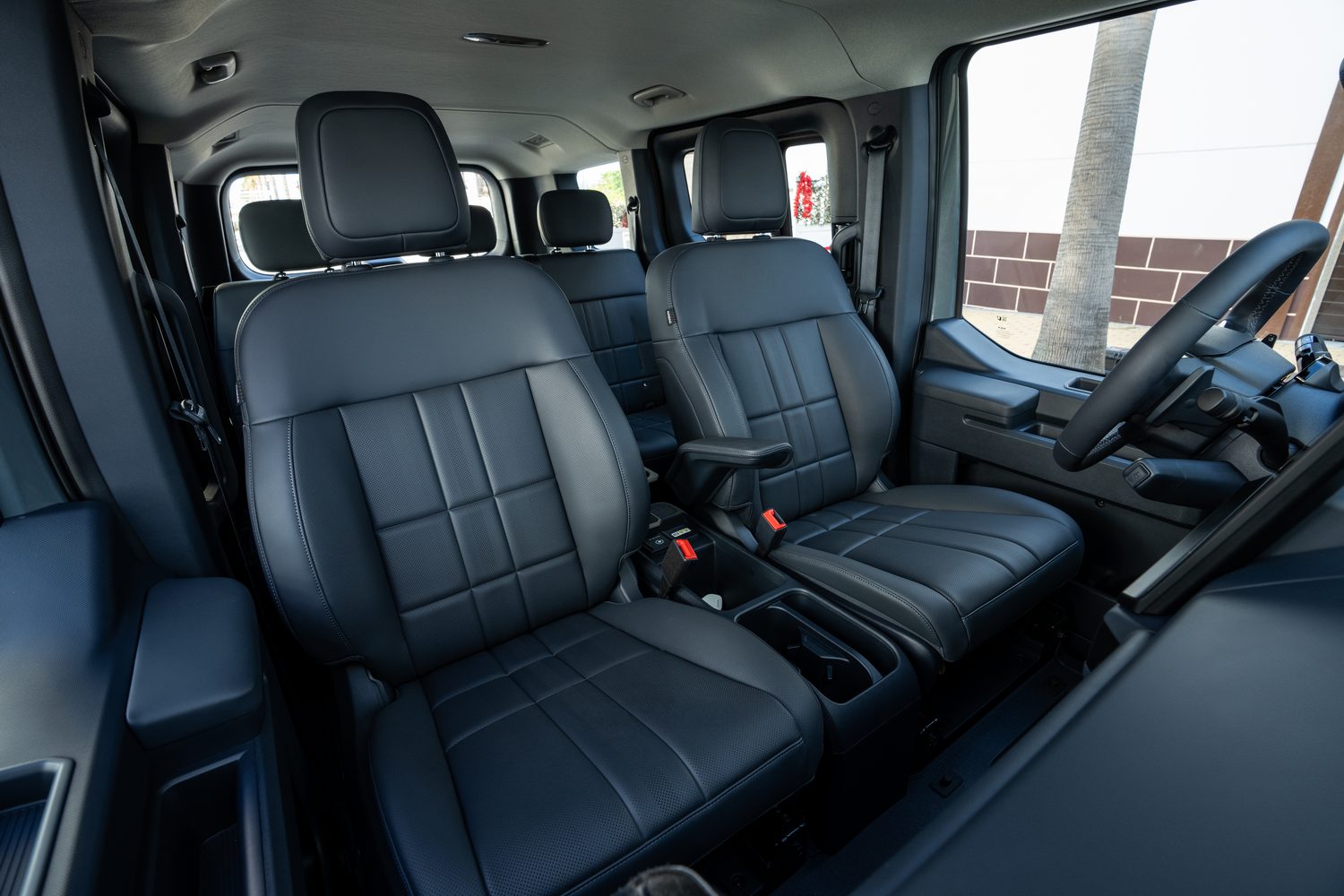 The interior look and feel are more commercial vehicle than passenger car, though it's not a bad compromise overall.