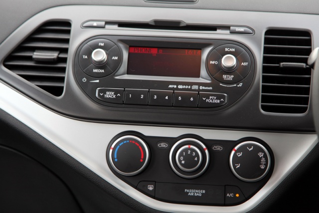 If Kia had managed to put alloy wheels onto the EX version instead of the steel wheels that are on it, this would be the best-equipped small car for the money anywhere. As it stands it must be close, because for just over €12,500 you get air conditioning, an iPod port, Bluetooth that will stream your music and control your phone, leather steering wheel and gearknob and steering wheel mounted controls. It is remarkably well equipped and very impressive for the price.
