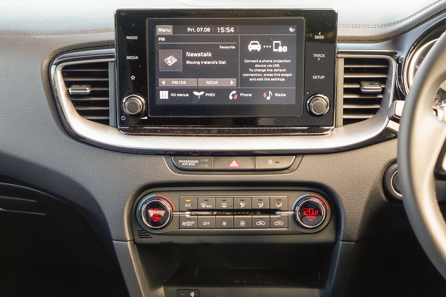 The XCeed hybrid is comprehensively well-equipped, including stylish 18-inch alloys, electric folding door mirrors, roof rails, auto lights with LED lighting all round, upholstery that is a mix of cloth and artificial leather, Bluetooth, Android Auto and Apple CarPlay compatibility, an eight-inch touchscreen infotainment system, rear view camera, keyless entry and start, cruise control, climate control, auto wipers and a suite of active safety systems.