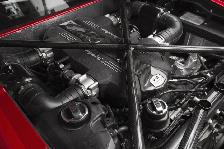 This new Aventador's V12 engine produces 750hp at a fairly astonishing 8,400rpm. It's liberated by upping the 6.5-litre unit's rev limiter to 8,500rpm, while improving the efficiency of the air inlet and exhaust systems. Those who've driven a standard Aventador might have considered that even more power was the last thing it needed, and that's magnified by the 50kg weight drop, plus there's an uprated chassis.