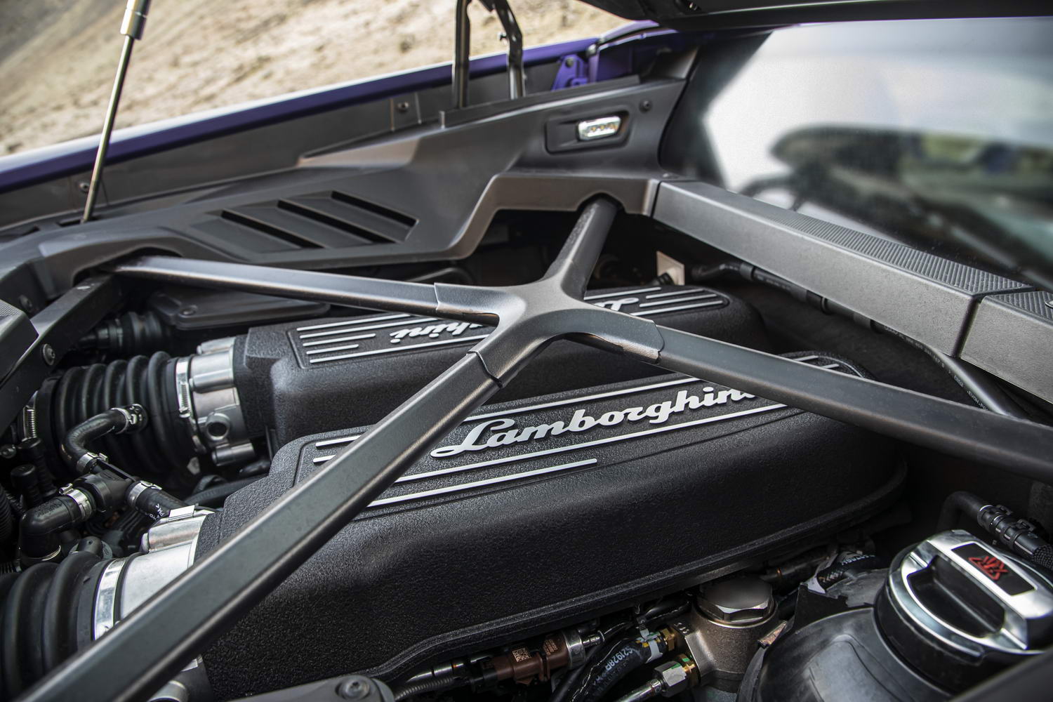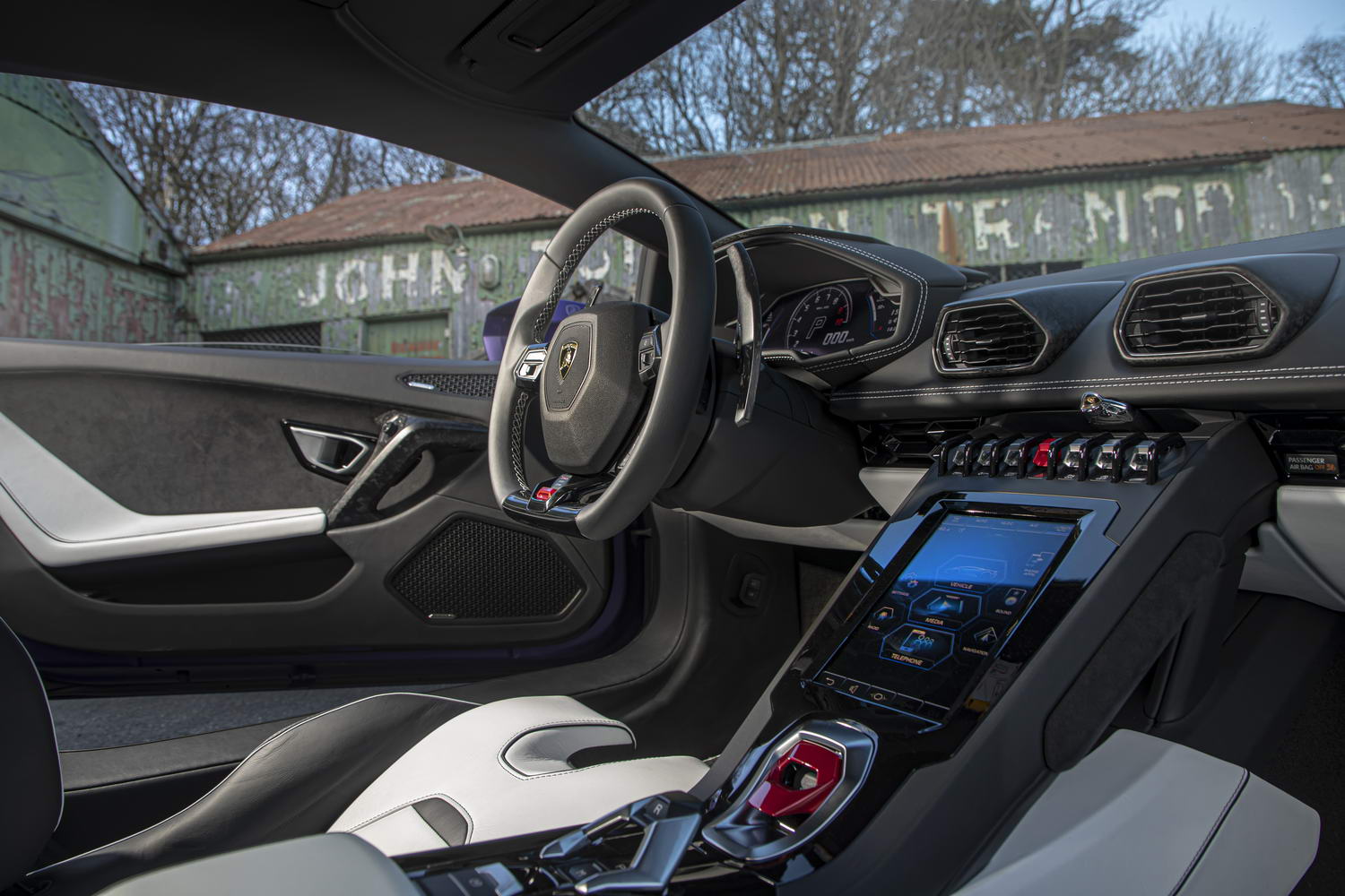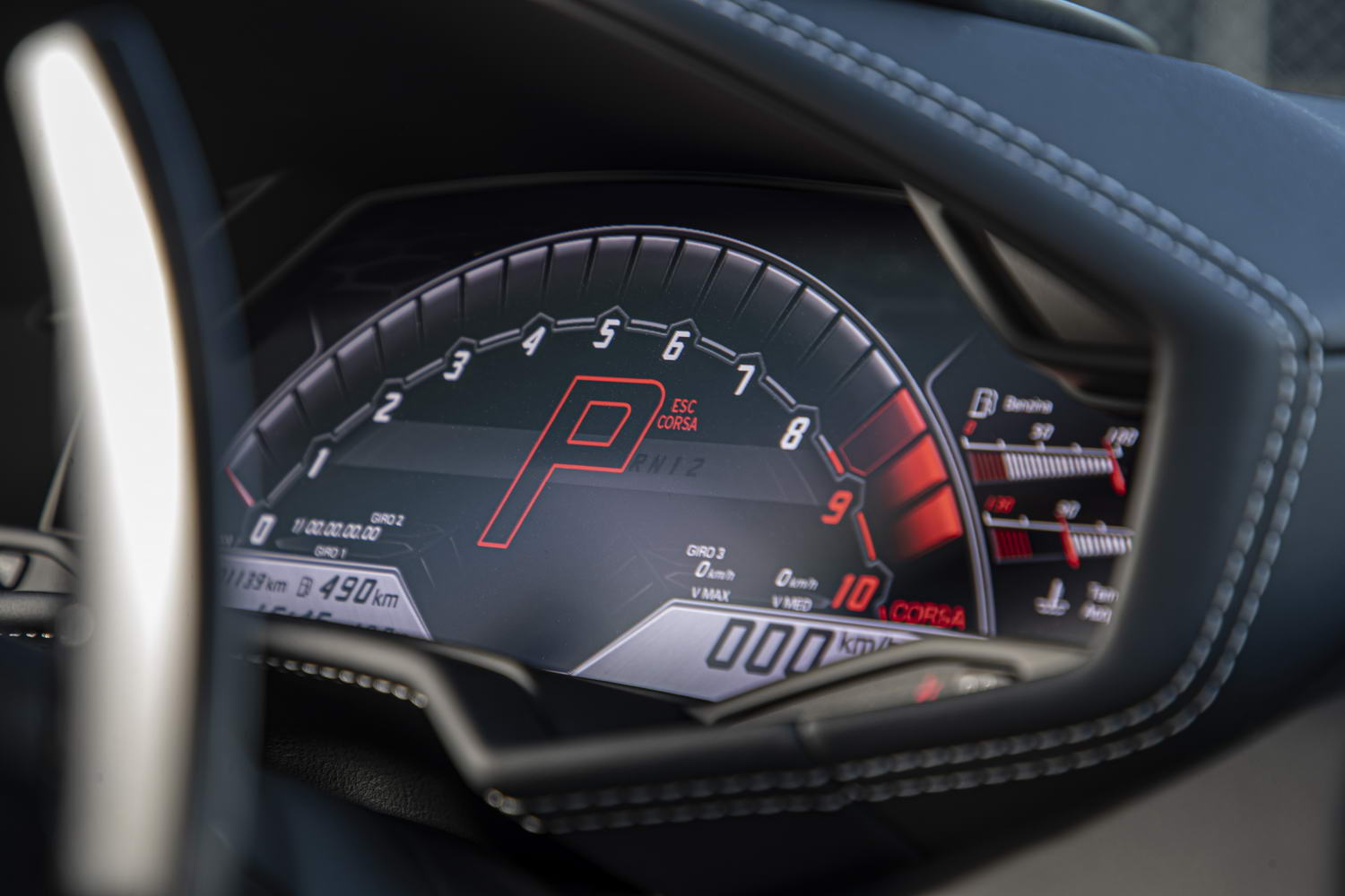 In truth, you'll drive the thrilling Huracan Evo RWD and wonder why you could possibly want any more driver involvement, any more chassis balance, any more noise and any more absolutely outrageous normally-aspirated-V10 performance from a supercar. Shorn of its front driveshafts and the rear-axle steering of the four-wheel-drive Huracan Evo, the RWD is 33kg lighter than a 4WD Huracan Evo at an overall weight of 1,389kg and that svelte figure makes it a total delight to drive from start to finish. Strada (street) mode is particularly good, as the Huracan in this setting actually comports itself in a relaxed and comfortable manner. Helped by those optional dampers and the standard 19-inch wheels (running Pirelli P Zero tyres, 245/35 ZR19 at the front and 305/35 ZR19s at the rear), the ride comfort is surprisingly pleasant and tyre roar is kept to acceptable levels, rather than being allowed to dominate the passenger compartment. The steering is light and easy to operate, while the seven-speed Lamborghini Doppia Frizione (LDF) seamlessly slushes shifts together. This is no lunatic Lambo; this is, like, approaching R8-levels of civility. There's even a useful and easily accessible 'nose lift' function to ensure you don't ground out the Huracan's no-doubt-mighty-expensive front splitter on speed humps and other low-lying hazards.